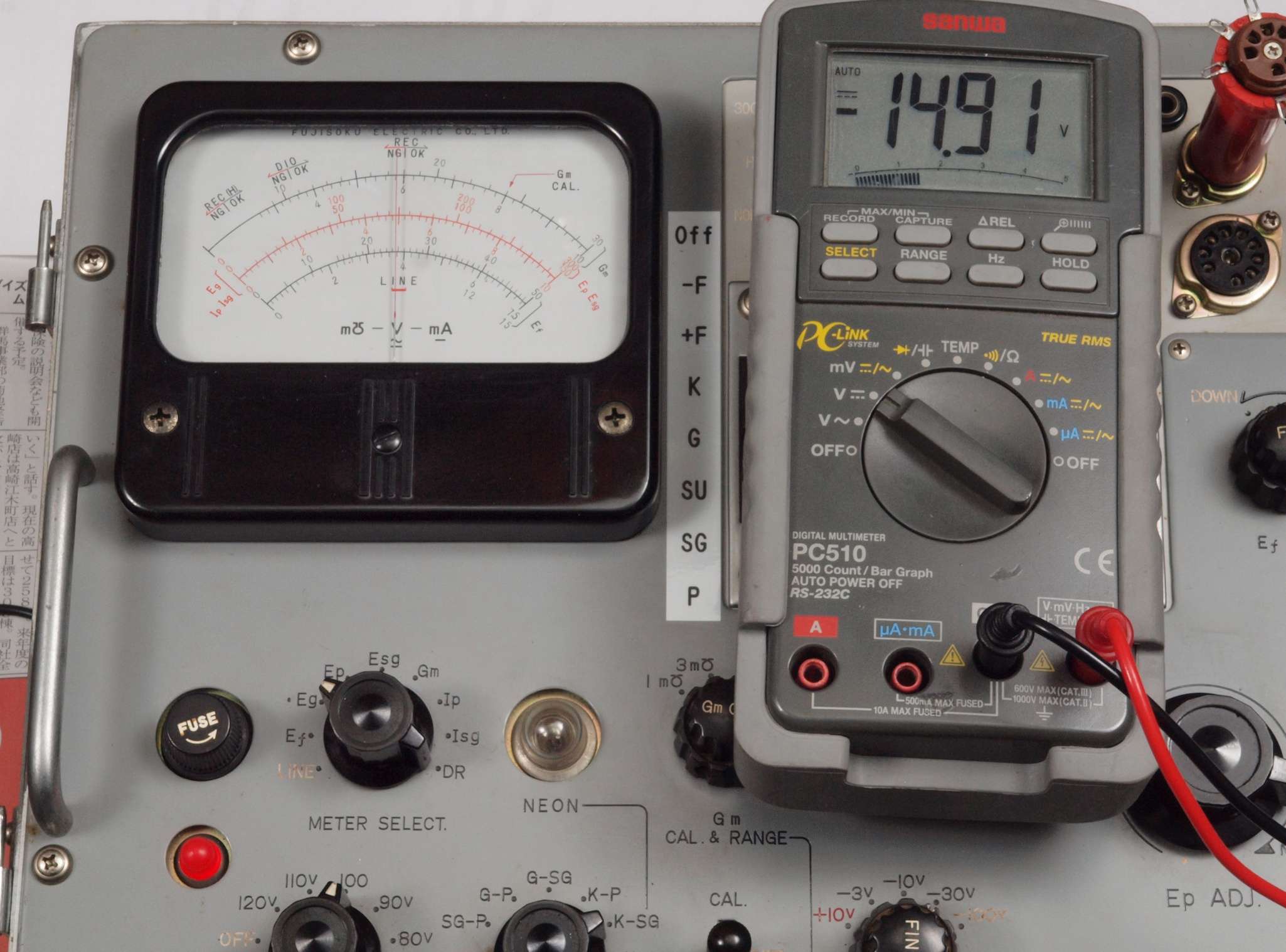 | B22. コントロールグリッド(BiasVolt)−15V、実測=14.91V(−30Vレンジ)。 | |||||||||||||||||||||||||||||||||||