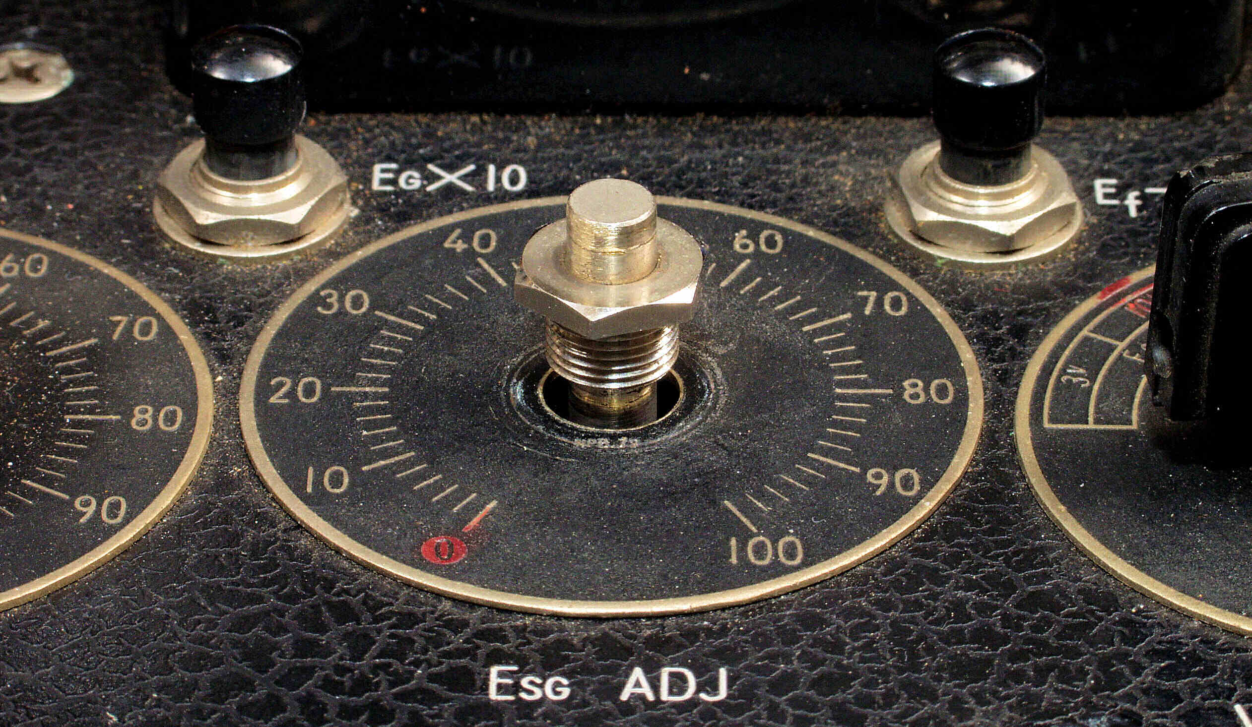 | EE. Gm直読み最終校正・測定 Hickok 600AはEp=150V、Esg=130V、eg1=2.5Vの固定で測定します。 真空管メーカの規格表は6GB8やKT88等の大型の出力管はEp、Esgの電圧が高く、電流も多く流れる為、誤差がでます。 TV球や後発の高Gm管は、eg1がもっと小さいので、誤差がでます。 EE−1A. 3000μmhoレンジでの「12BH7」測定=2600μmho、この試験の為、少しぼけた3000μmho以内のを使用する。 |