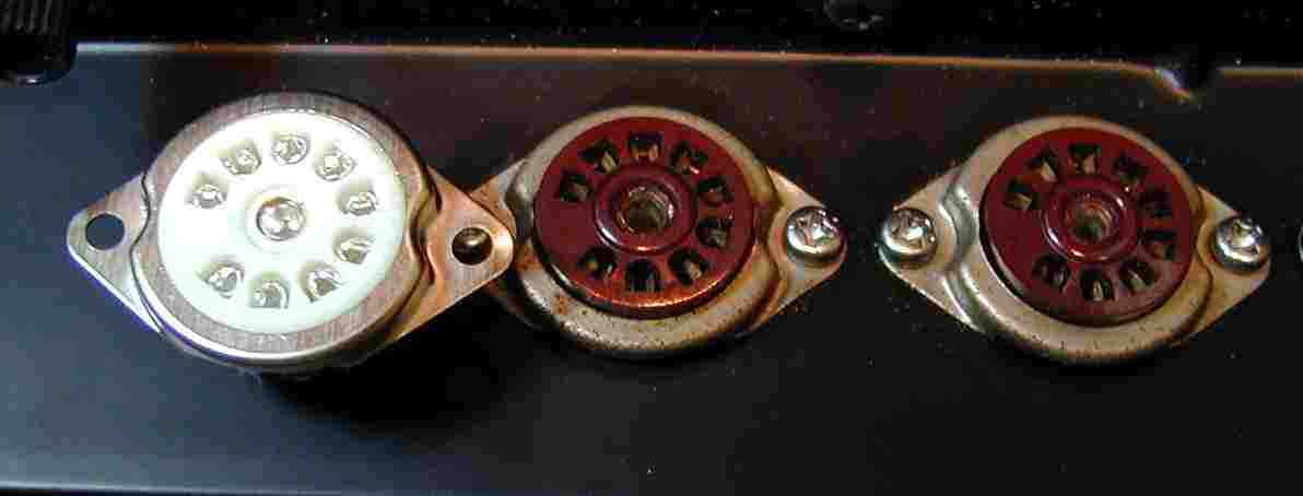 | A3.黒くなりい接触不良が生じている、真空管ソケット、左新品の磁器製(ステアータイト) | |