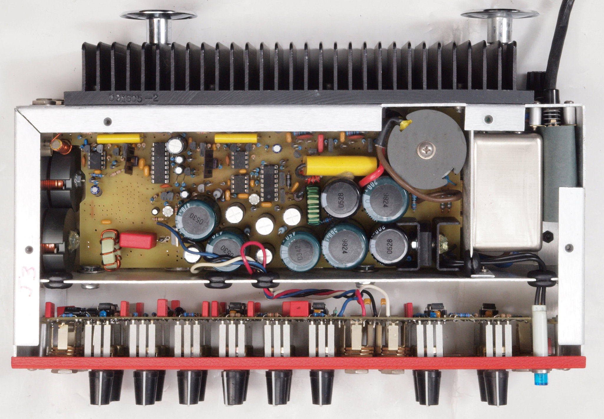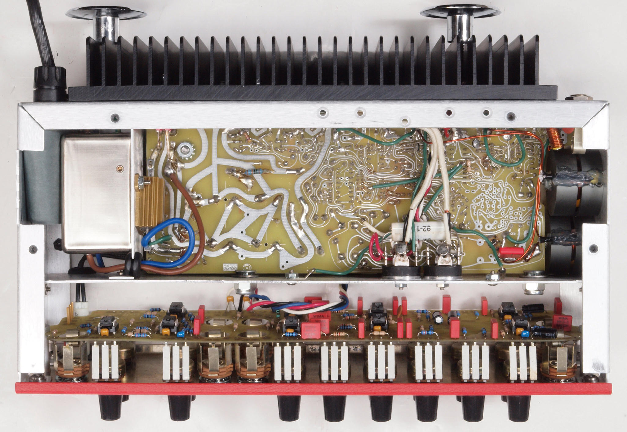 C12. 修理中 メインAMP基板の終段FET(電界効果トランジスター)と電源スッイチングFET(電界効果トランジスター)、型番は消されている。