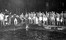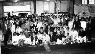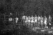 両毛線の終電で高崎駅に着き 寮を目指して出発      出発前に勢揃い  途中のチェクポイント(城南村役場前)