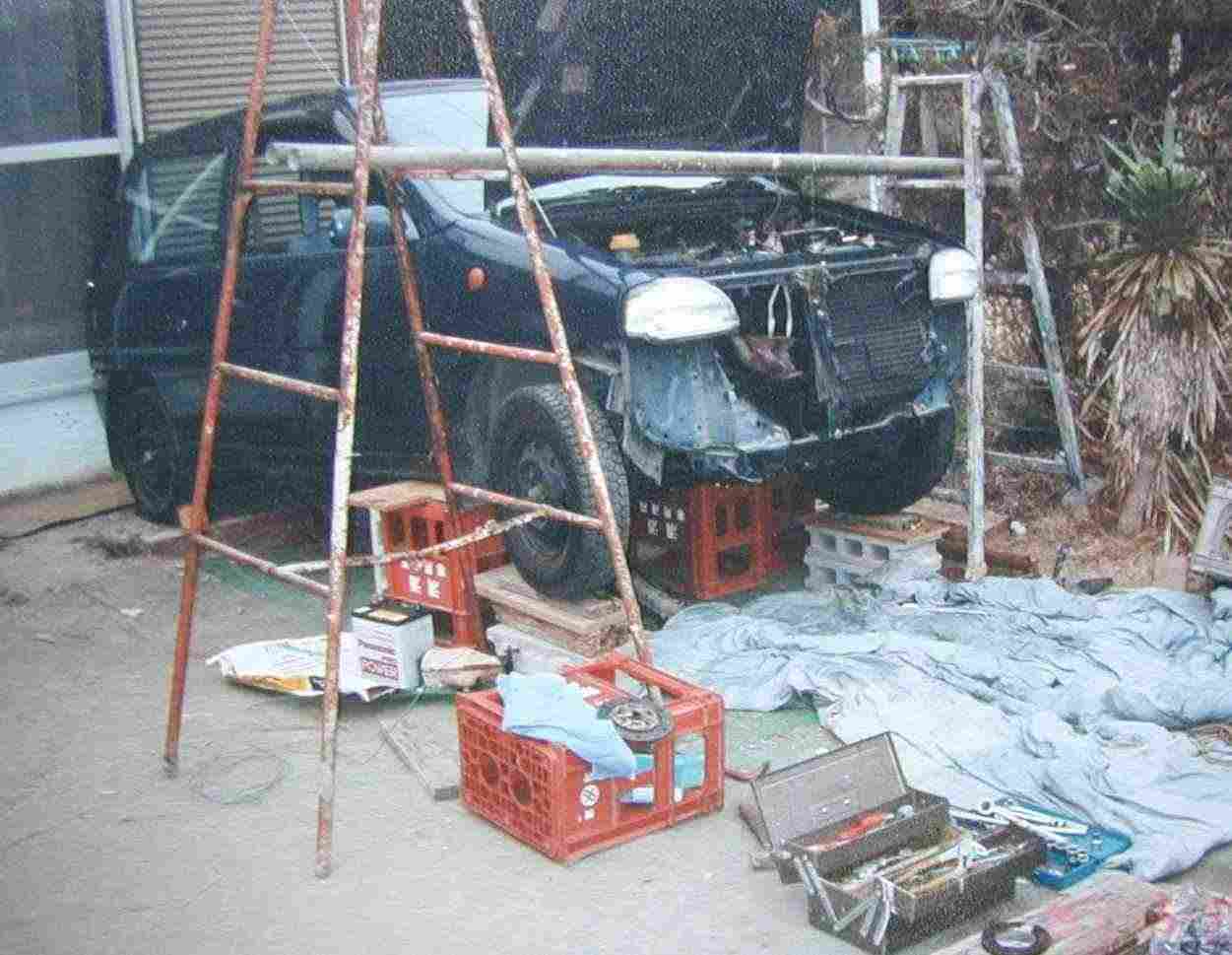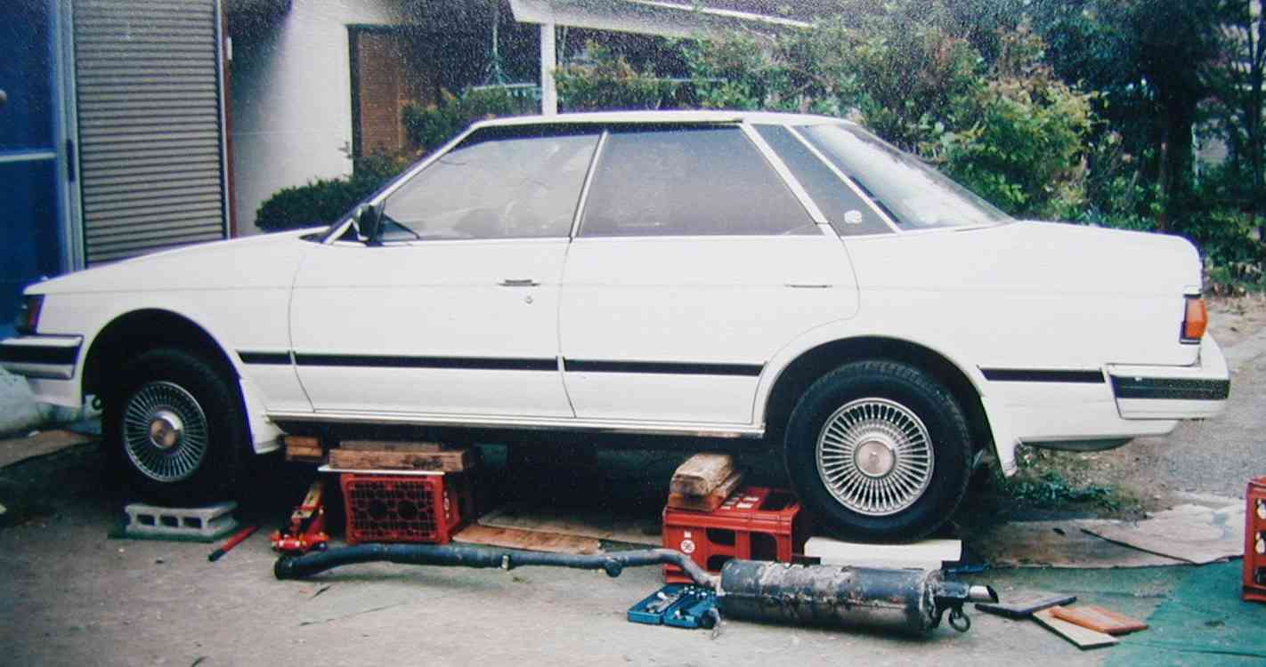 下の写真は、平成9年に11年目の車検の為、マフラ−修理の様子。