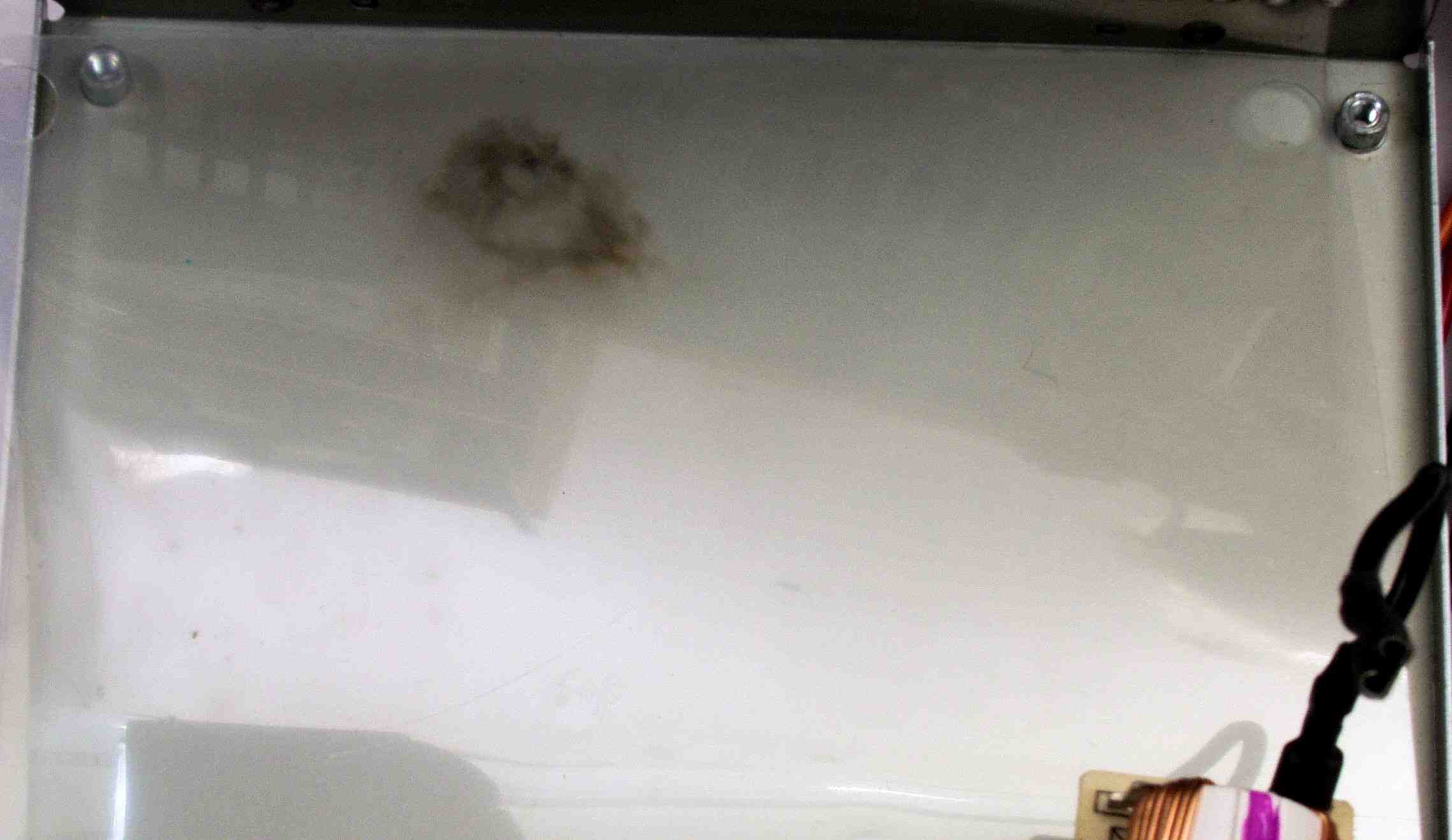 | 24. CPU用、下の絶縁シートに残る、スパークアークの跡。 |