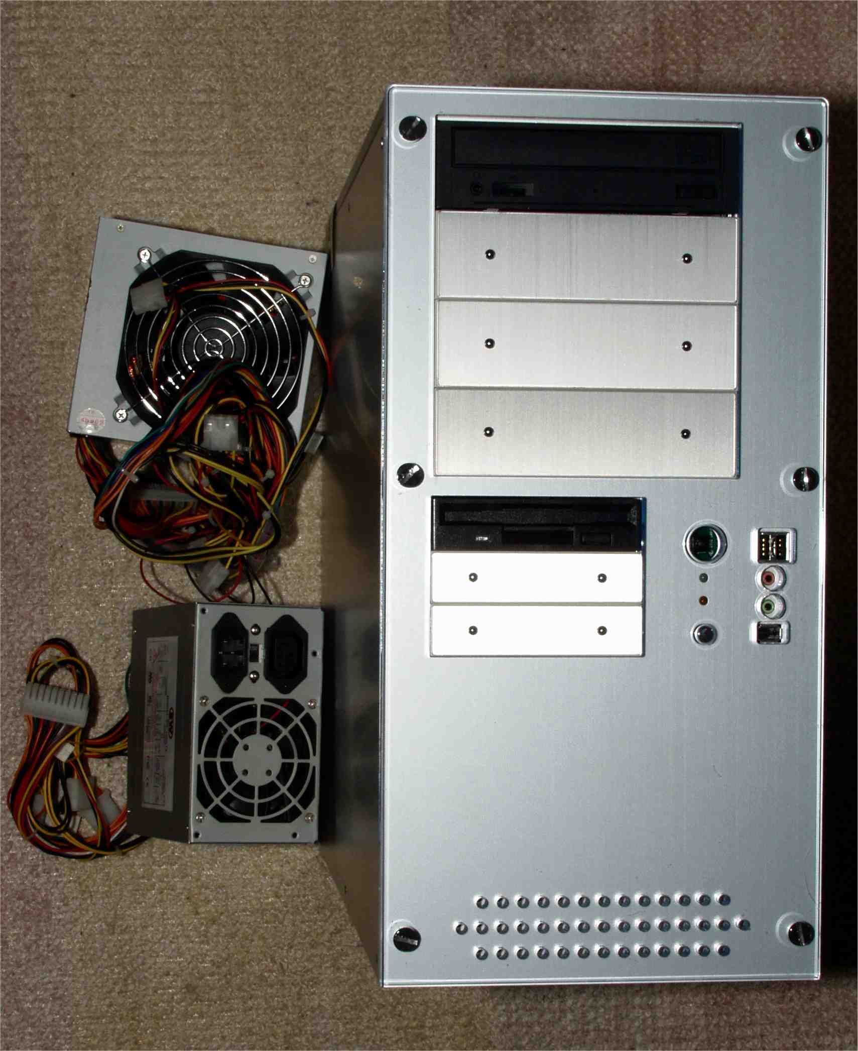 旧式の厚いアルミケース(電源+FDD+CD付き)+電源2個。