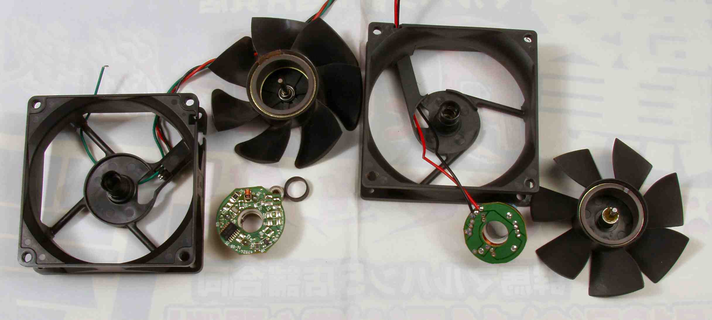 左=新しいので、Two-Phase Brushless Fan Motor Driver使用。面実装なので部品が小さくて大変。