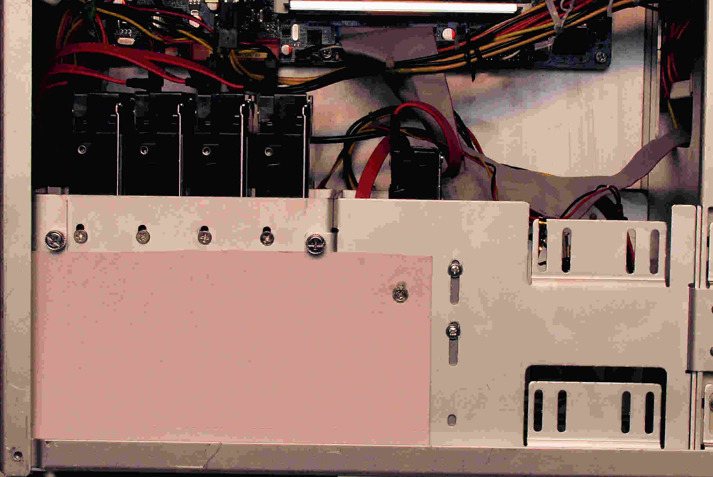 83. 「試作器2号」製作。4台のHDDに風が行くように、隙間に厚紙を取り付ける、反対側も同様にする。