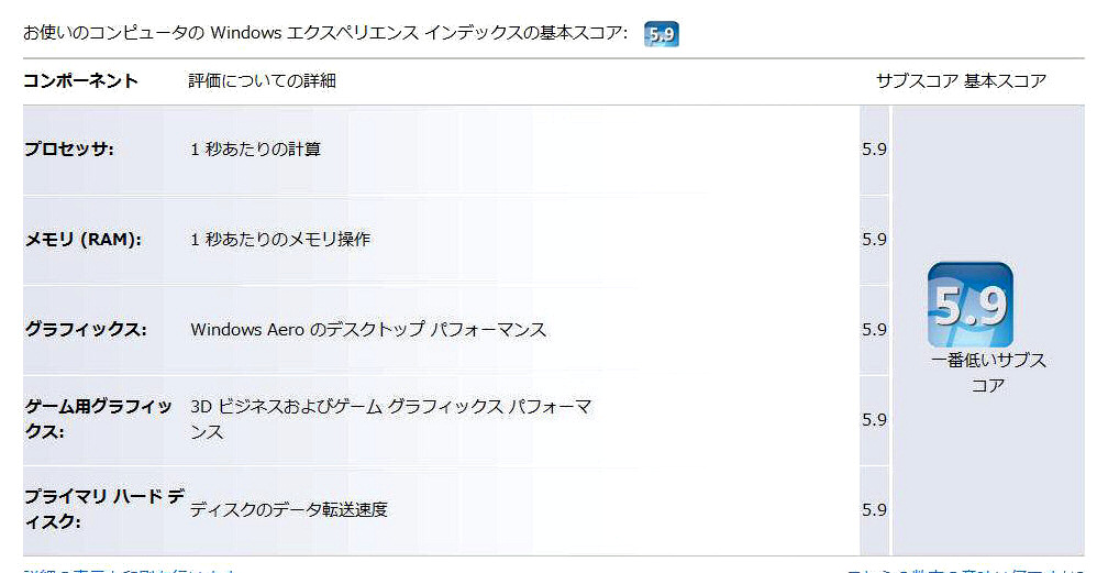 A3. 「試作器2号」 Windows Experience Index score=5.9