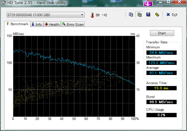 73. HDD(Seagate ST31000333AS)1台の HD Tuneの結果