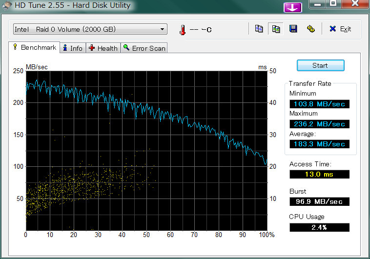 A4. HDD(Seagate ST31000333AS)4台のRAID_0 のHD Tuneの結果