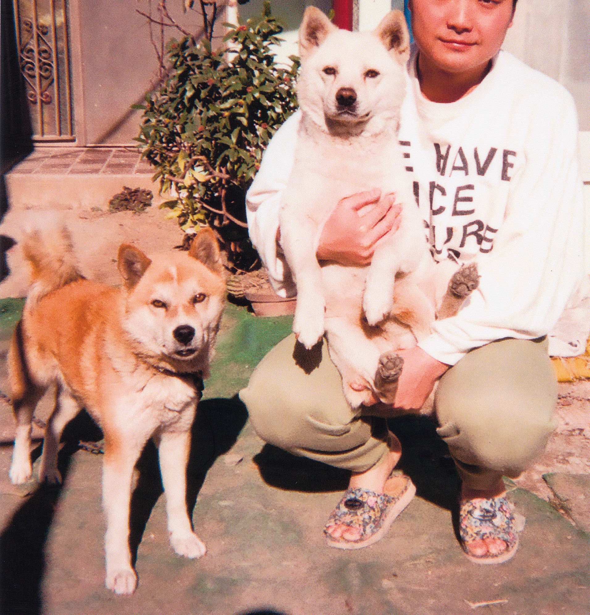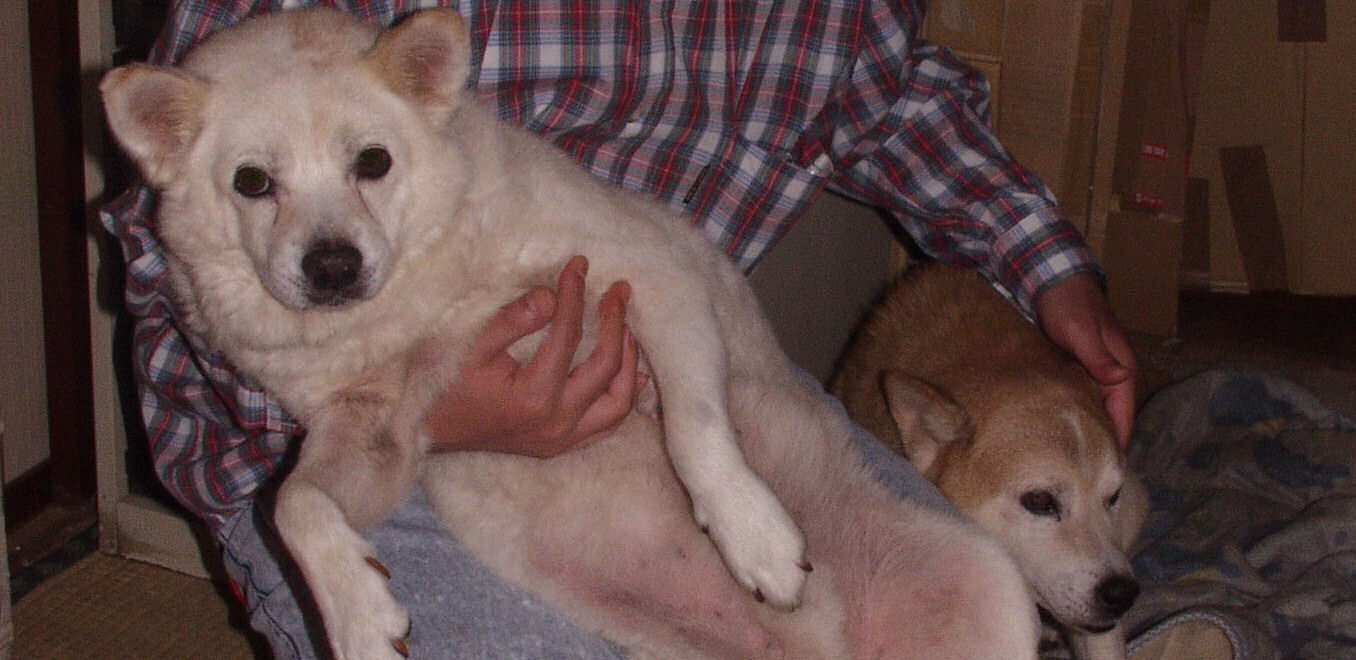 | 24. 2代目 「コロ」、と3匹目「シロ」。平成3年。 帰省した大学生の倅と再会 |