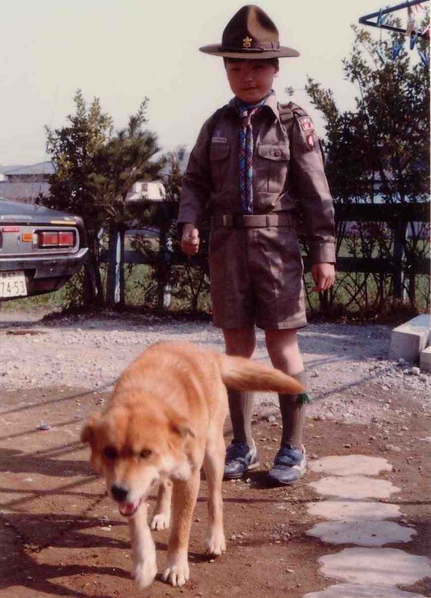 | 15. 次男と初代「コロ」、昭和60年5月。 |