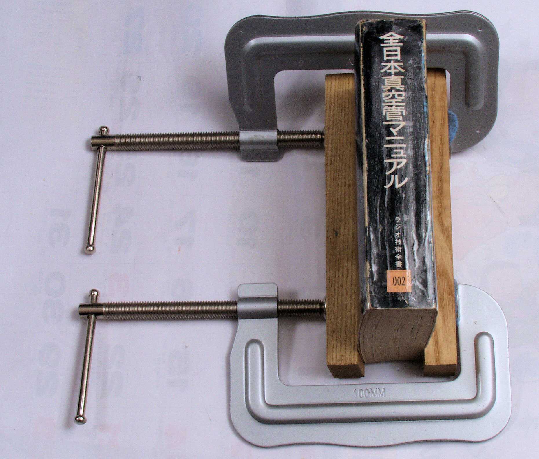 8A. 「1964年」製、National 真空管ハンドブック、「シャコ万力」で圧迫し、折れ込み等の癖をとる。