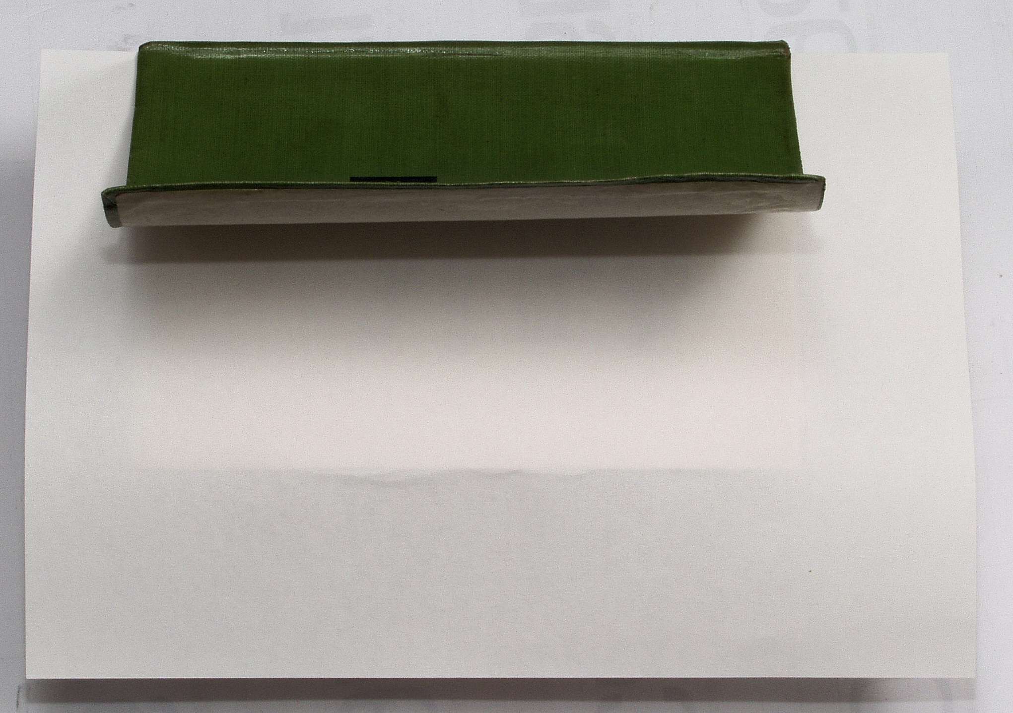 32. 修理後、折り込まれた物。 ペーパーナイフ等を使い折りを戻し、折り目に「ビニール糊」を塗る。