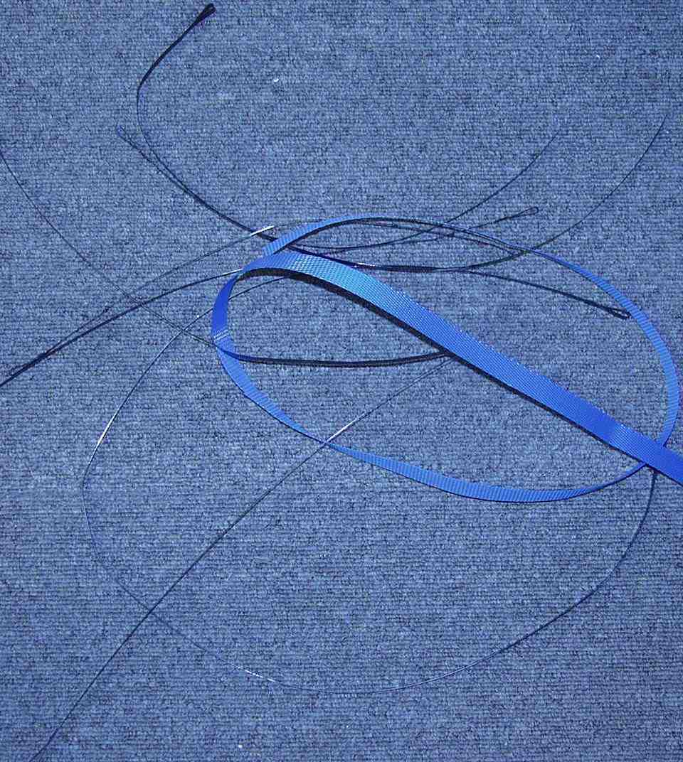 荷物を縛る、ナイロン製の紐で作る。 <<廃物再利用>>