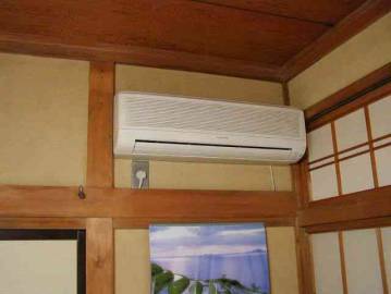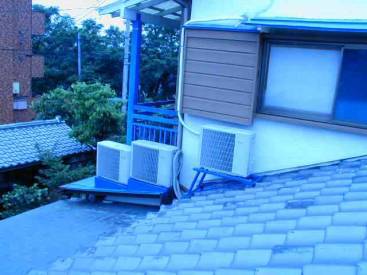 冷媒配管は1F天井裏を通り、1F屋根の室外機へ、ドレインは壁を下がり床下を通り外へでる
