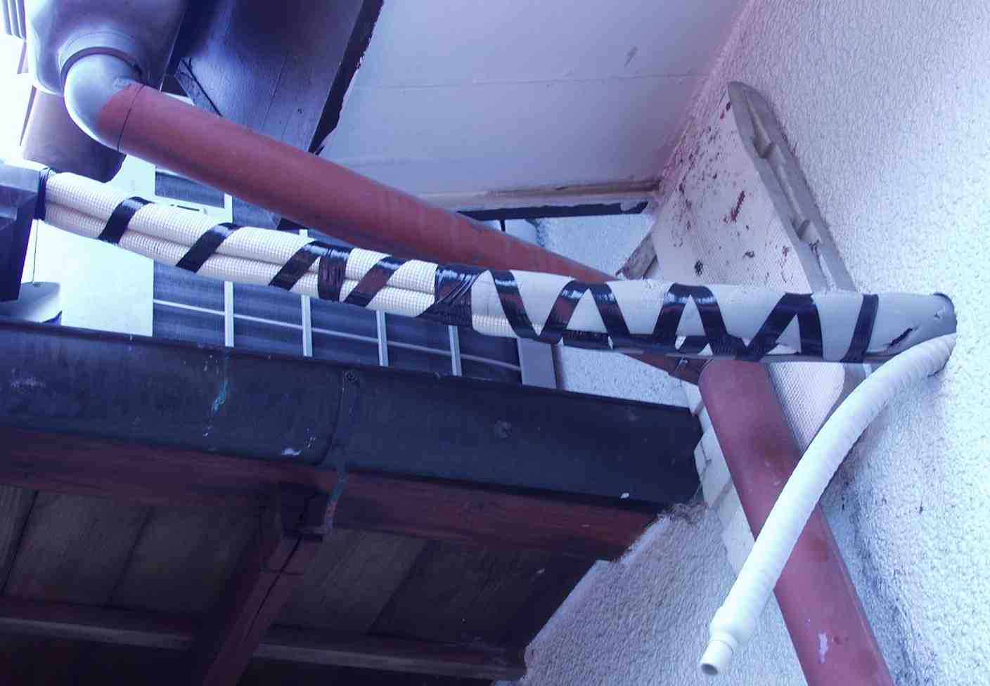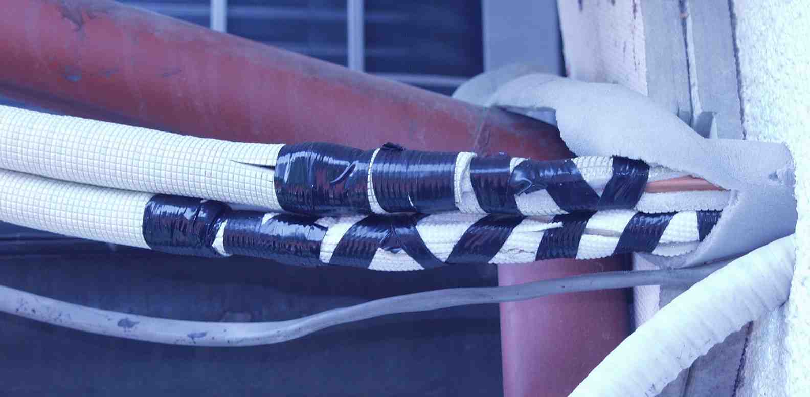 | 33.室外機側の配管の様子 頭の(エフコ)・テープは折って巻く |