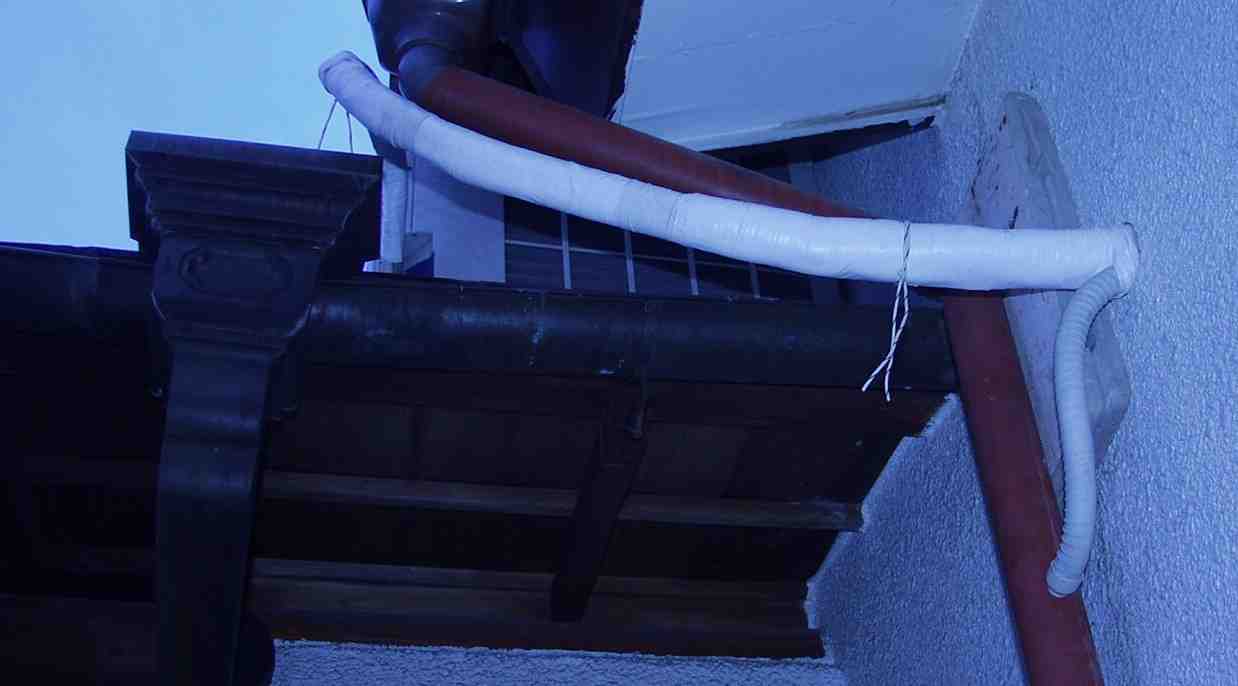 | 25.ドレインの配管は雨樋にジョイント 壁穴へのコンパウンドは後で入れる(在庫が見つからない) |