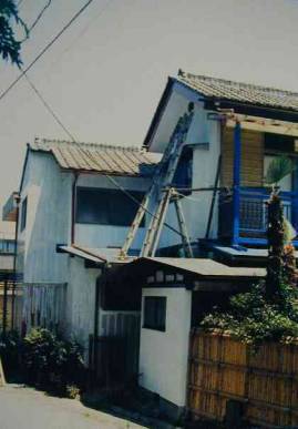 2.足場鋼管で構築、雨樋も修理、塗装する。