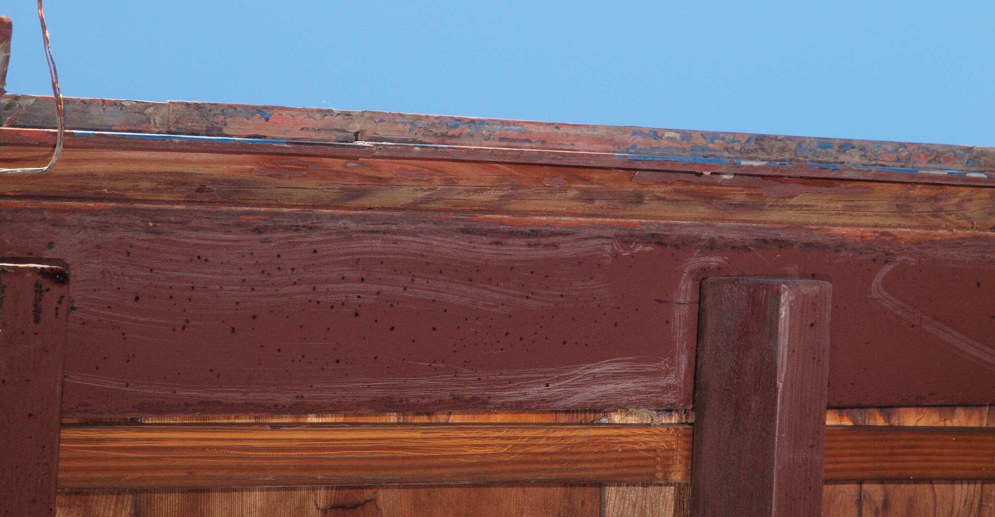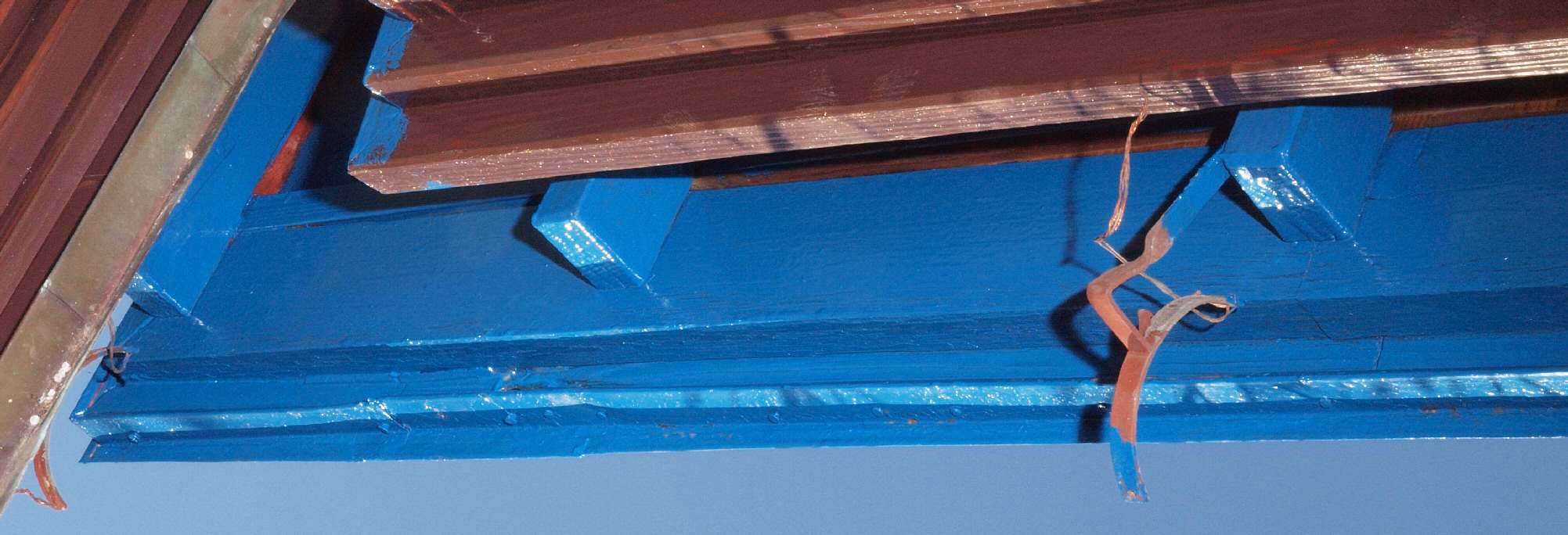 | 55. 修理中 1F南側軒天西端、1回目の塗装終了。 |