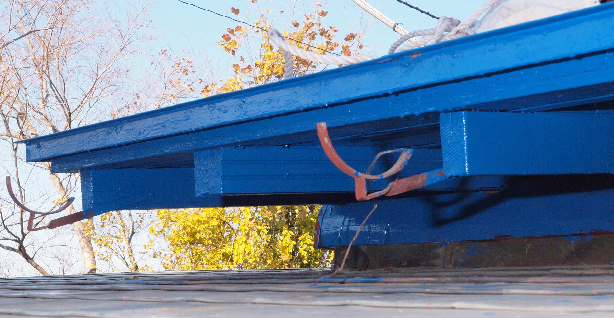 | 57. 修理中 1F南側軒天西端、 1回目の塗装終了。 反対側から見る。 |