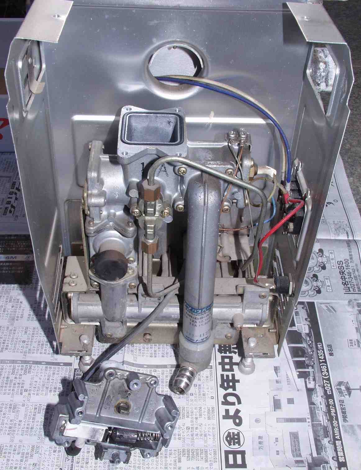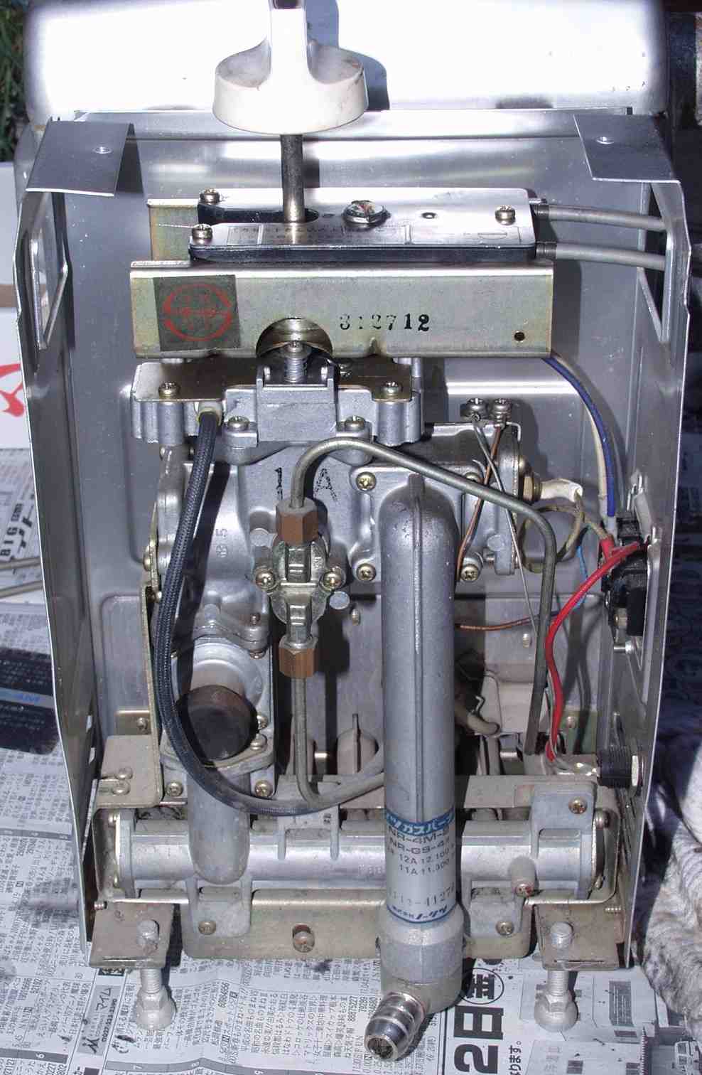 | 131.操作弁のヒンジが出ている。 左=がメインバーナー用 右=ガス入力 下=パイロット用 |