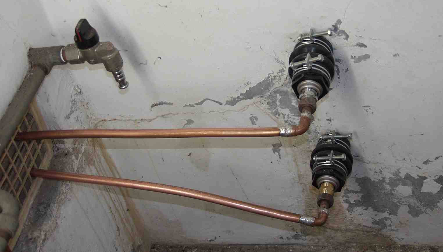 53.追い炊き配管 近くの電気屋から不要のエアコンの銅管を貰い、再利用する(少し凸凹しているのはその為)