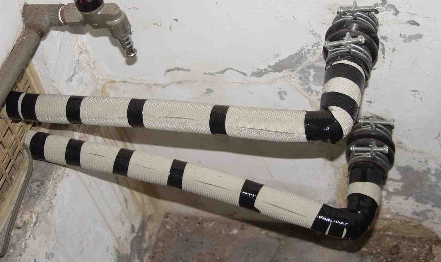 | 54.追い炊き配管 保温をして、テープを巻、完成 |