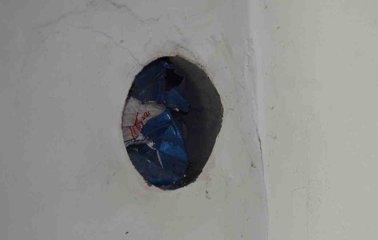 | 71.残工事 エントツの穴塞ぎ。 暖かくなったら、モルタルでふさぐ。 |