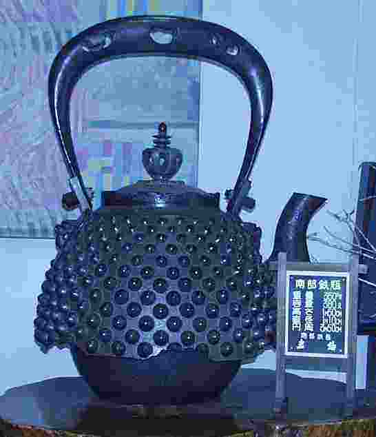 | 江戸幕府が成立し、平和な時代が到来して、茶道に造詣の深かった28代南部藩主重直公が、自藩から良質の鉄等の原材料が産出することから茶の湯釜の制作を思い立ち、藩内の鋳物師とは別に江戸時代初期(1659年)京都出身の釜師(初代小泉仁左衛門)を召抱え、茶の湯釜を作らせたのが南部釜の起源。 3代仁左衛門が鉄瓶を創作(1750年頃)したのをはじめ種々の工芸品が制作され、それらを総称して現在の「南部鉄器」のブランドとなる。 江戸時代後期には、歌舞伎玄治店で与三郎がお富と再会した場面で言う台詞「お鉄(鉄瓶)は南部で…」と言われるまでになりました。 明治以降は、海外の万博その他でも高い評価を得た。岩手県が世界に誇る伝統工芸品であり、国からも伝統工芸品第1号の指定を受けた。 |