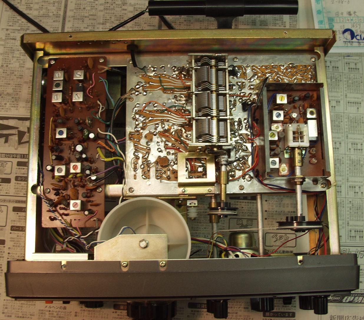 A−2. 修理前 第1IF増幅修理(DEFバンドで使用)バリコンの片側(左)の絶縁体(シリコンシート)が抜けている