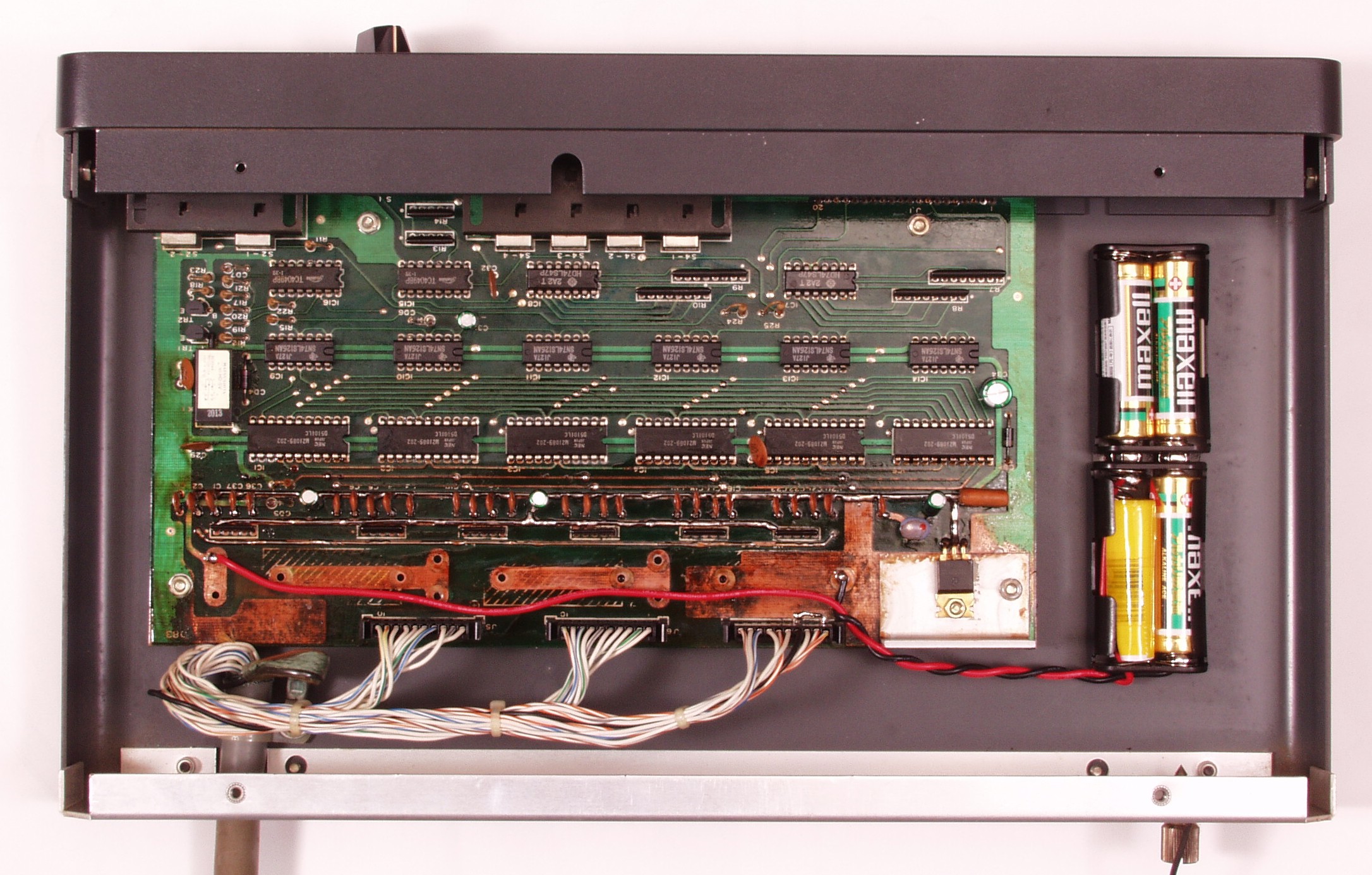 | C−6B. 修理中 シンセサイザー基板、シールドを外した所 |