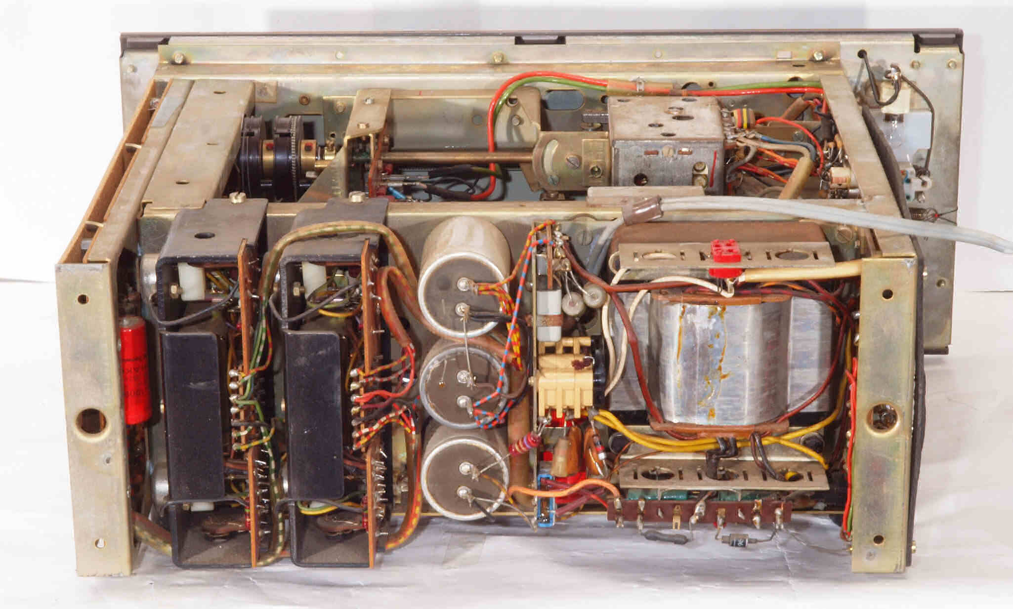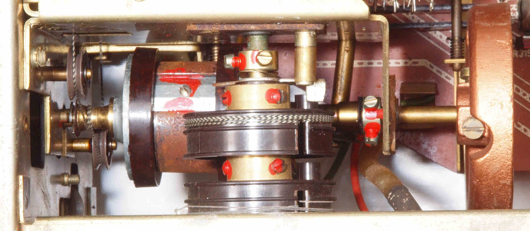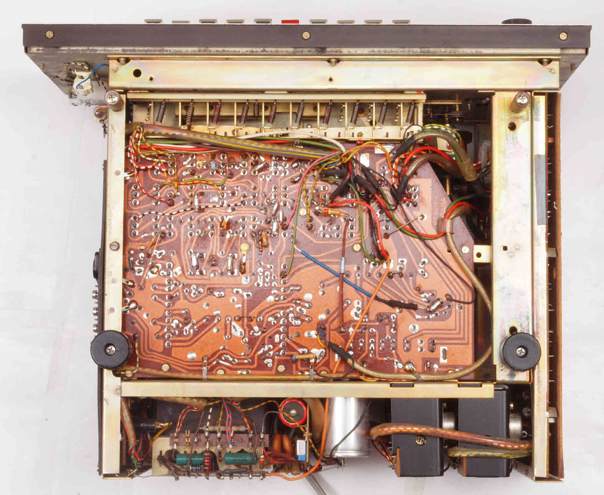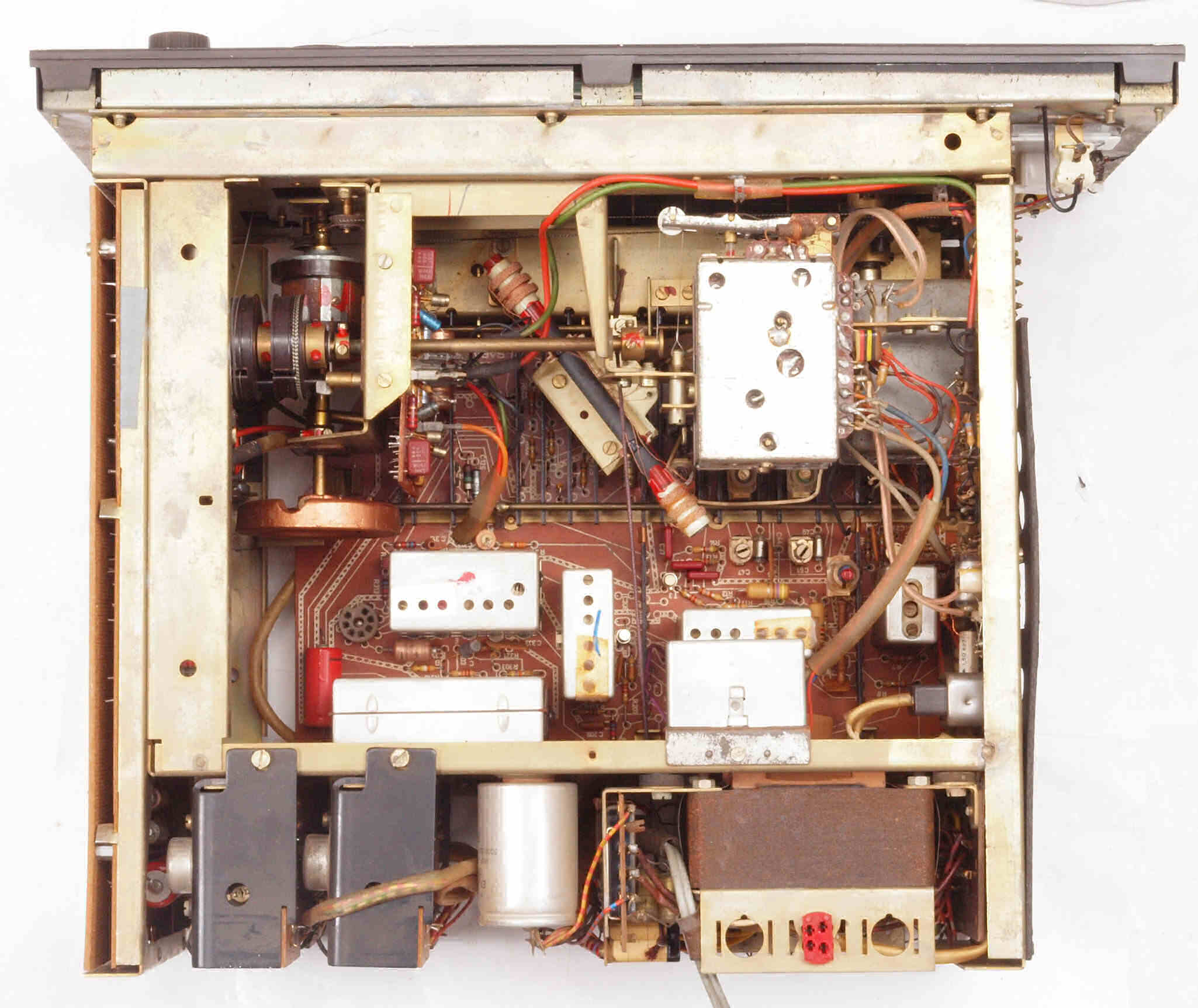 A22. 点検中 上から見る。 ダイヤル切替機構故障でAMダイアル不動。