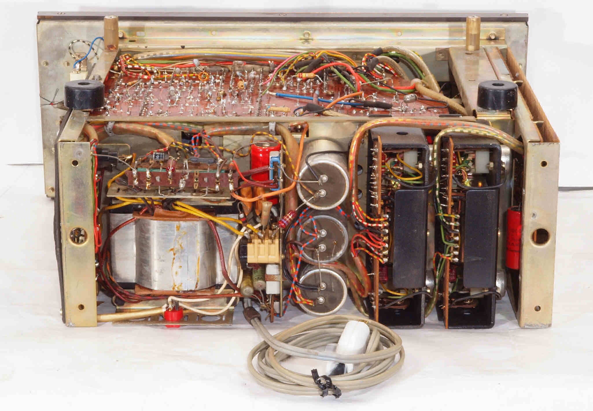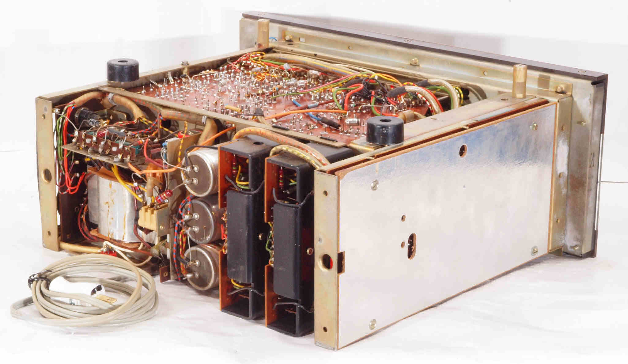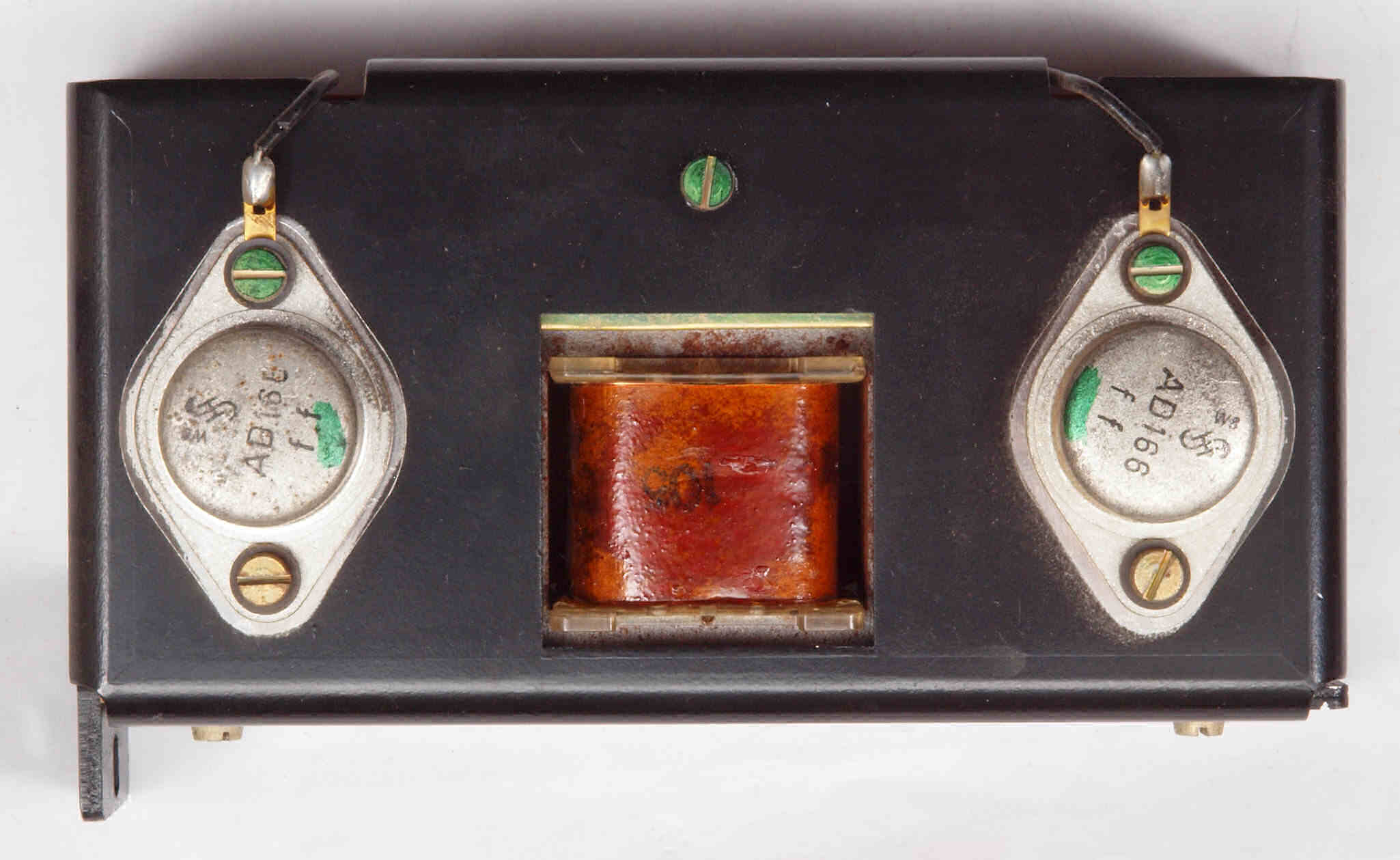 C11. 修理中 R側終段TR(トランジスター)。貴重なジーメンス−ハルスケ(Siemens & Halske AG)製のゲルマTR(トランジスター)。 |