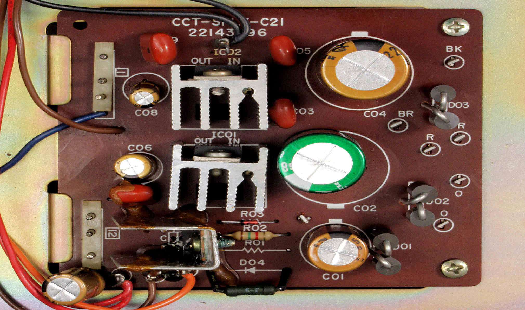 C1B. 修理後 電源基板  電解コンデンサー6個、整流ダイオード6個交換。