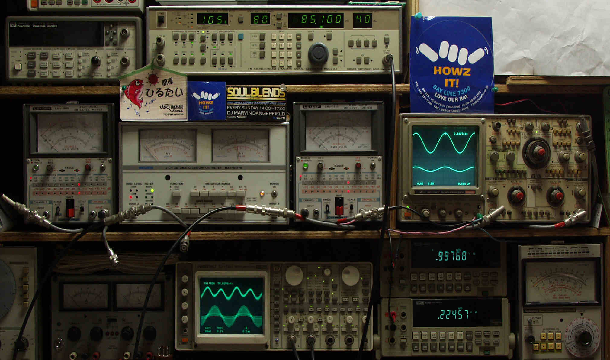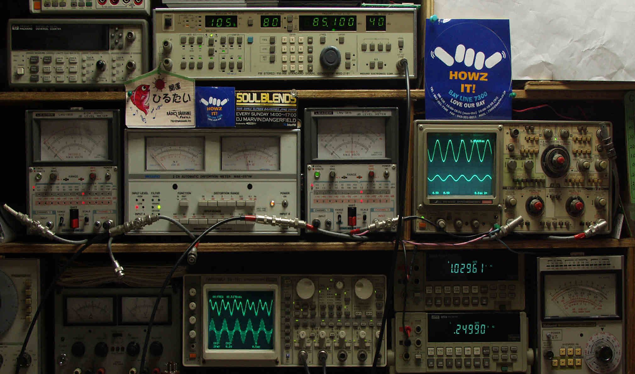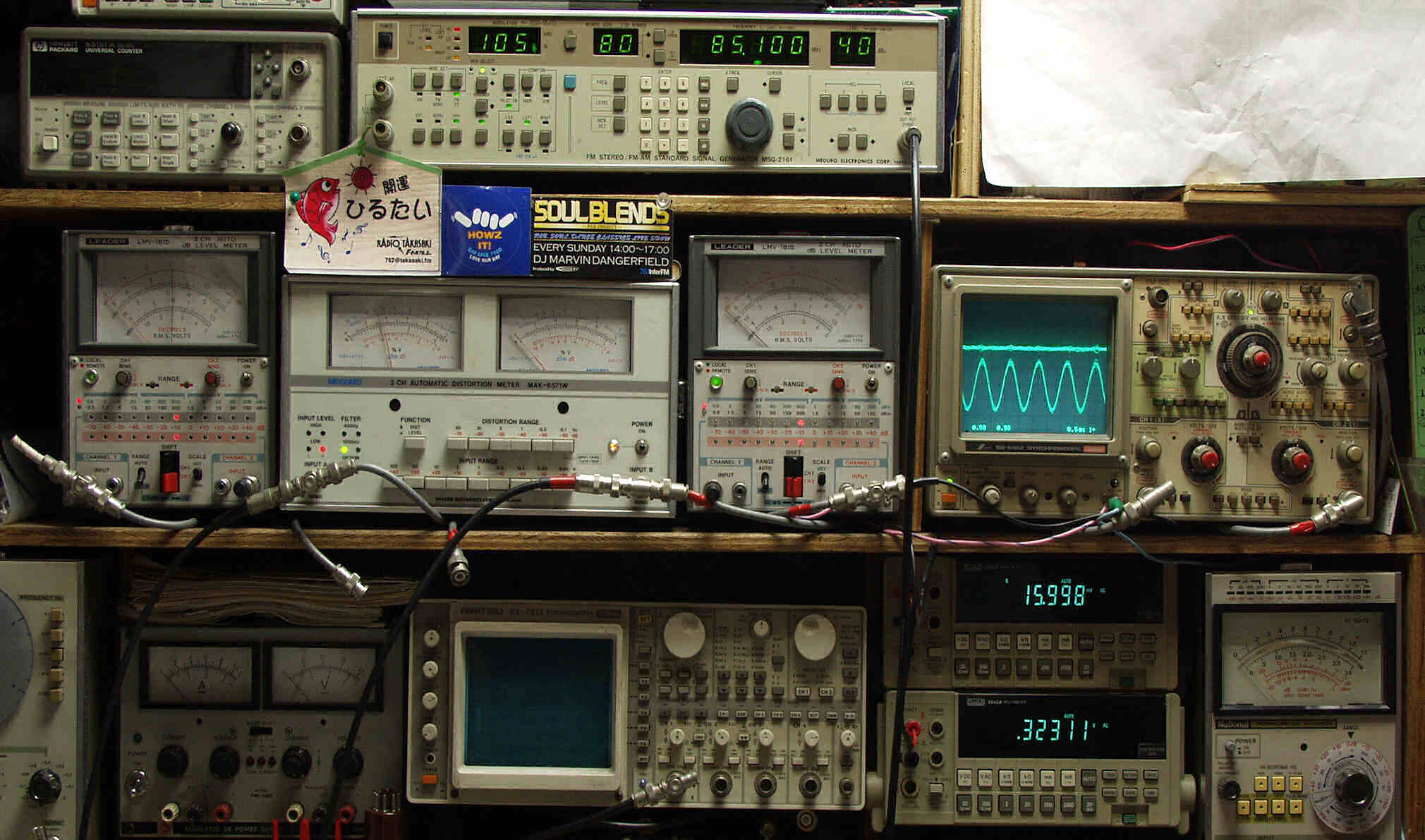 中段中左 歪み率計=出力の歪み率測定 左メータ=L出力、右メータ=R出力