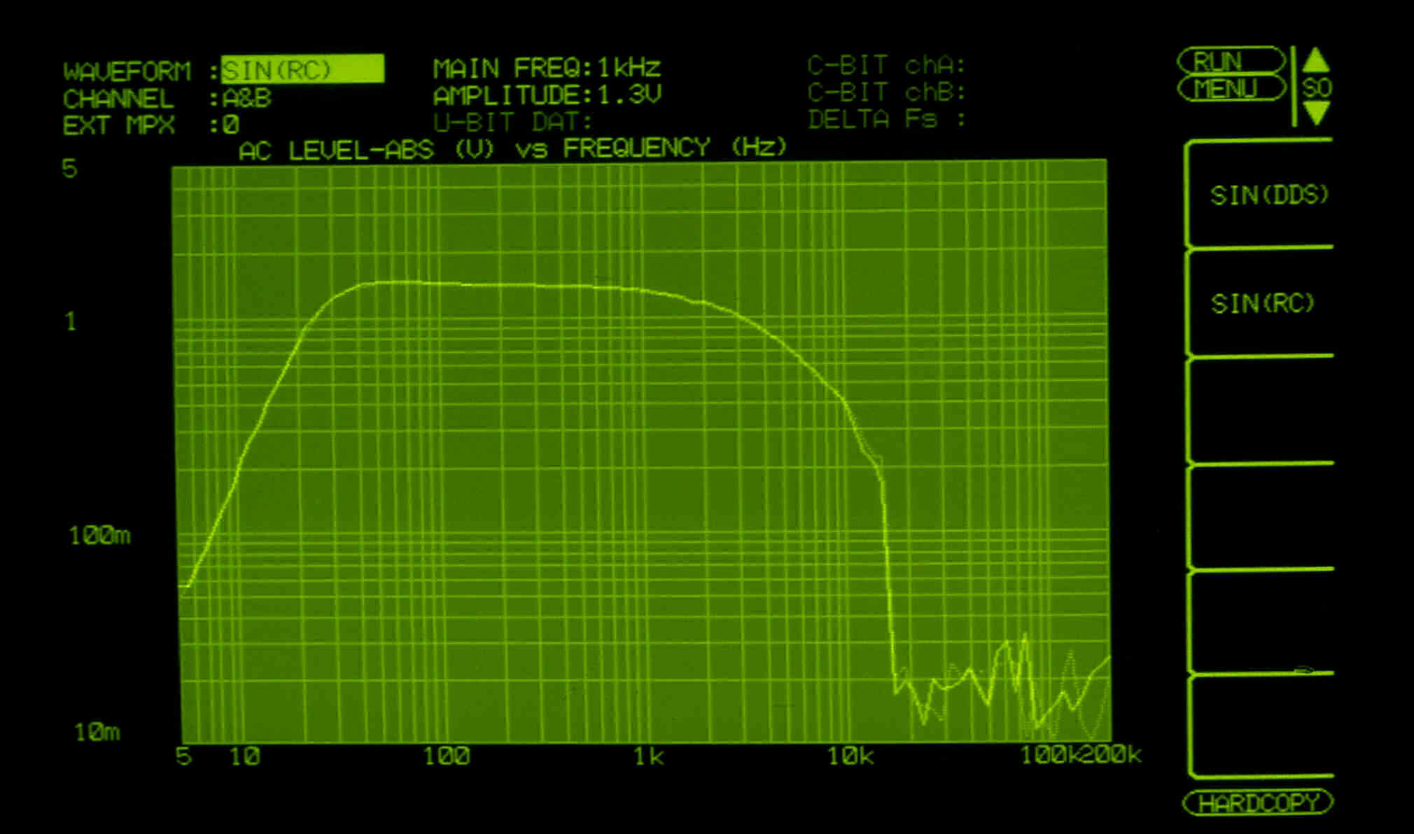 中段右端 オシロ=SP出力波形 上=R出力、下=L出力(実際にはRL電圧計の出力「Max1V」を観測)