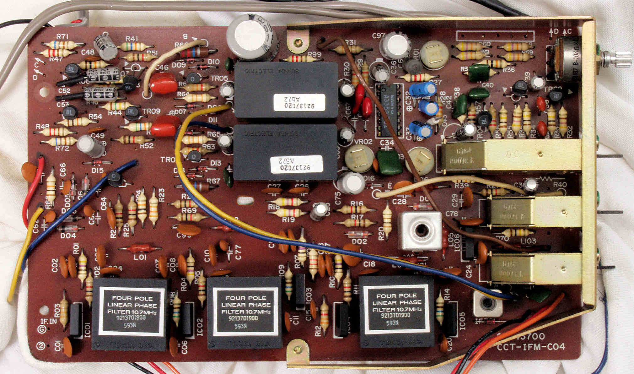 C4E. 完成IF・MPX基板裏。余分なフラックスを落として、コート液を塗る。