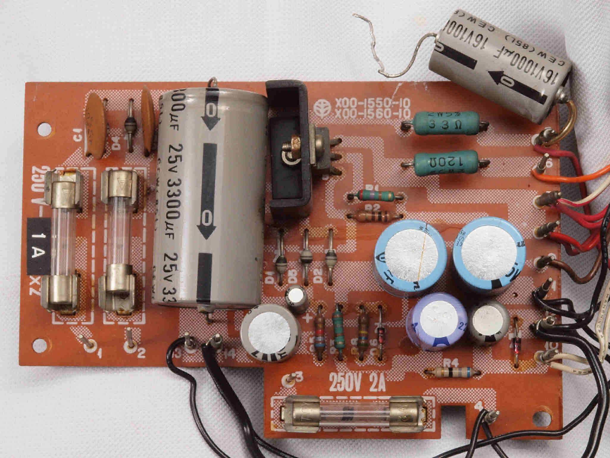 C64. 修理後 電源基板 電解コンデンサー8個、半固定VR1個交換