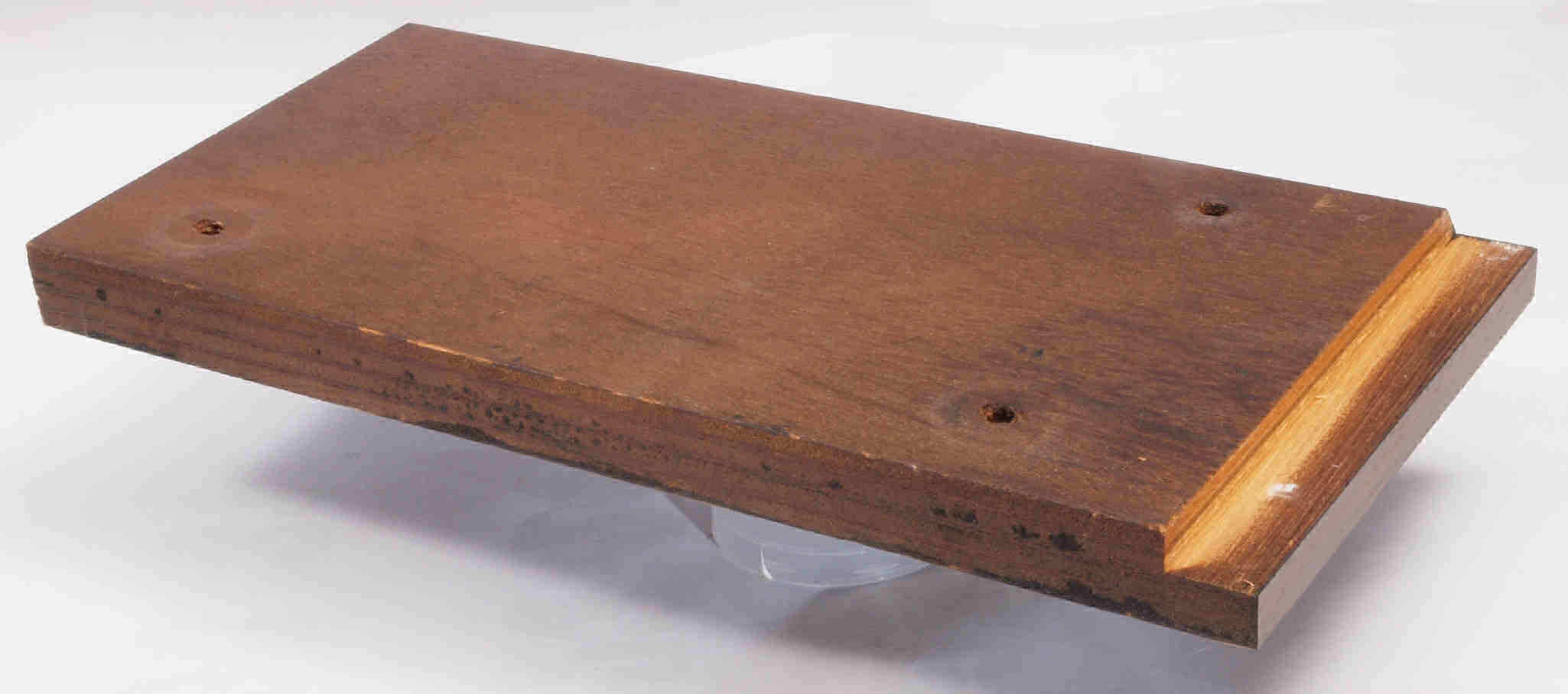 A222. 点検中 下前左から見る。 サイドウッドの割れ。