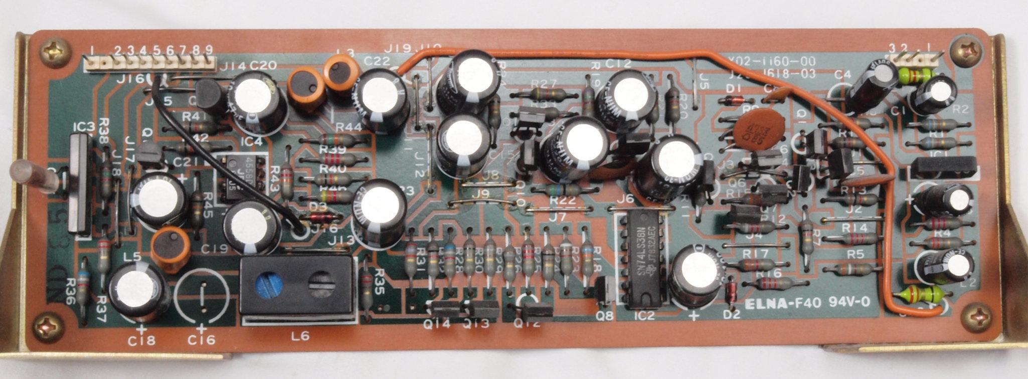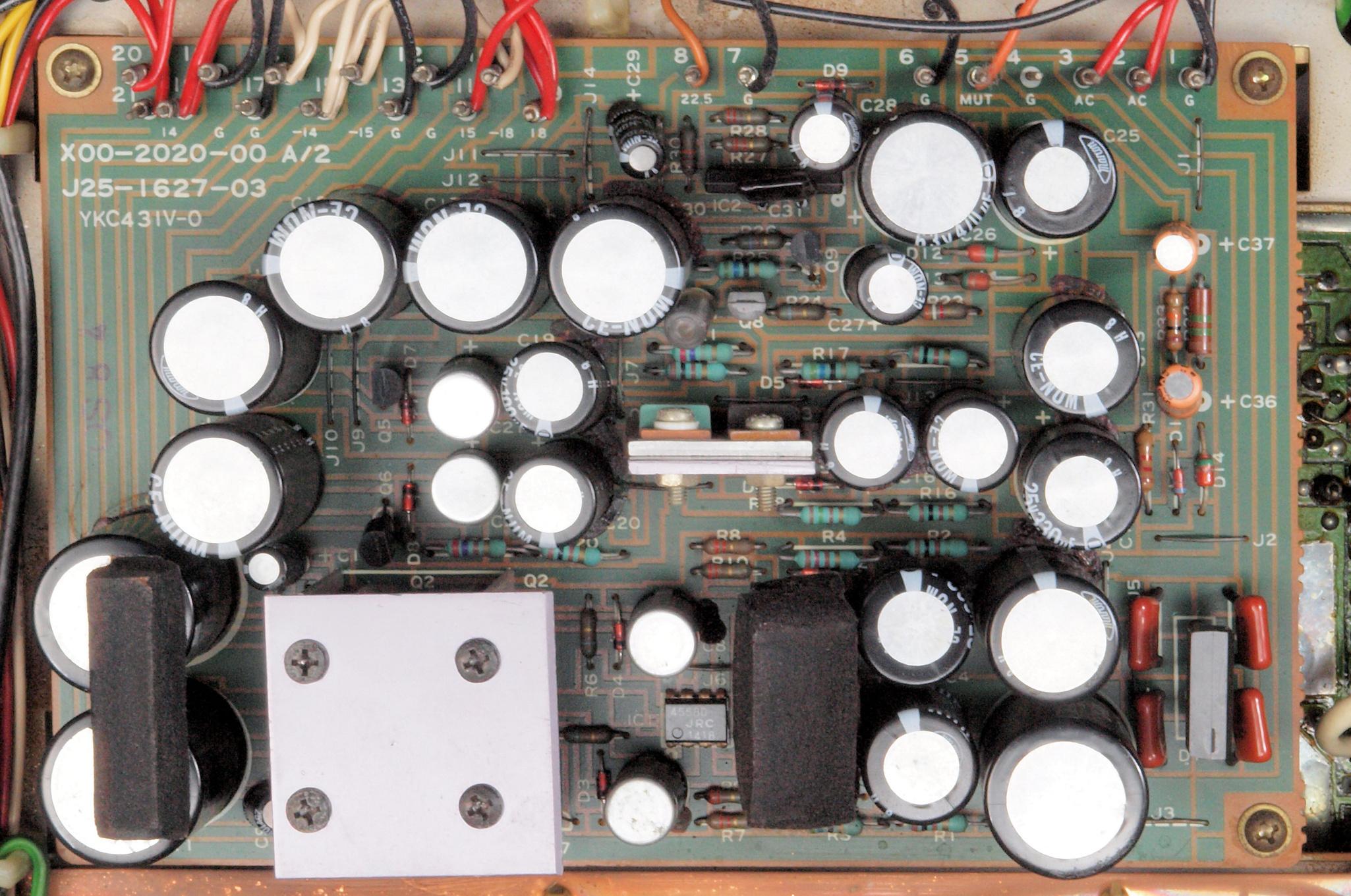 C15. 修理後 PowerSupply基板。 ゼナーダイオード2個、電解コンデンサー32個交換、黒ミューズが大分使用できました。