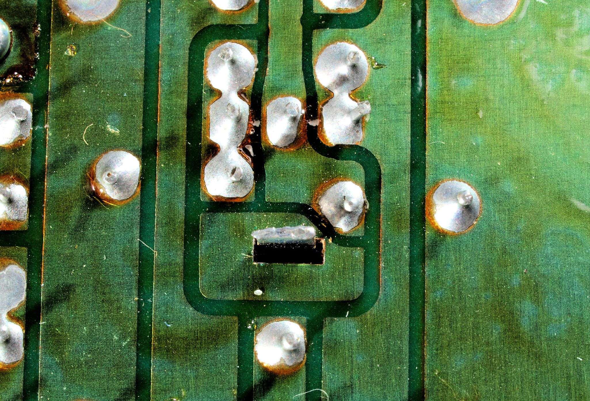 | C425. 修理中 IF基板裏、未半田場所2、レジストを取り、半田糊代を作る。 | ||||||||||||||||||||||||||||||||||||||||||||||||||