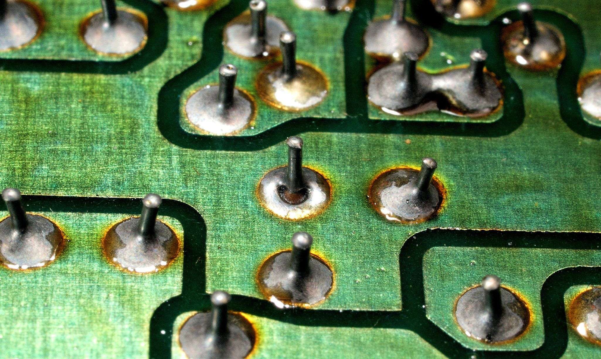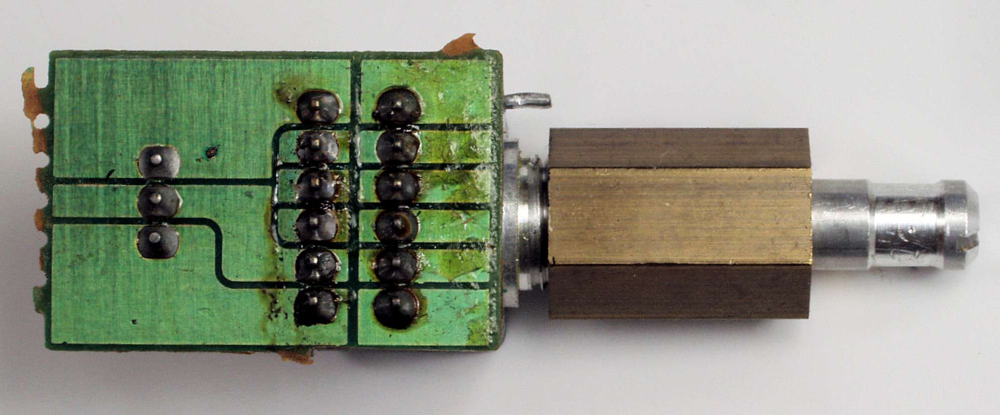 | CI4. 交換部品、交換した足の腐食したOP-AMP、反対側から見る。 | ||||||||||||||||||||||||||||||||||||||||||||||||||
