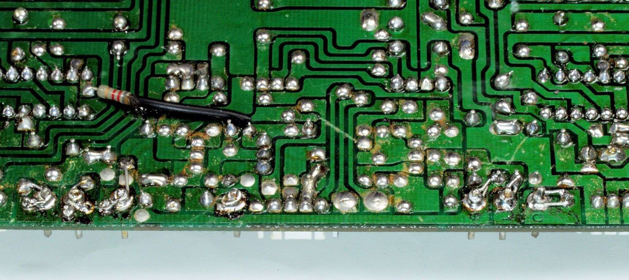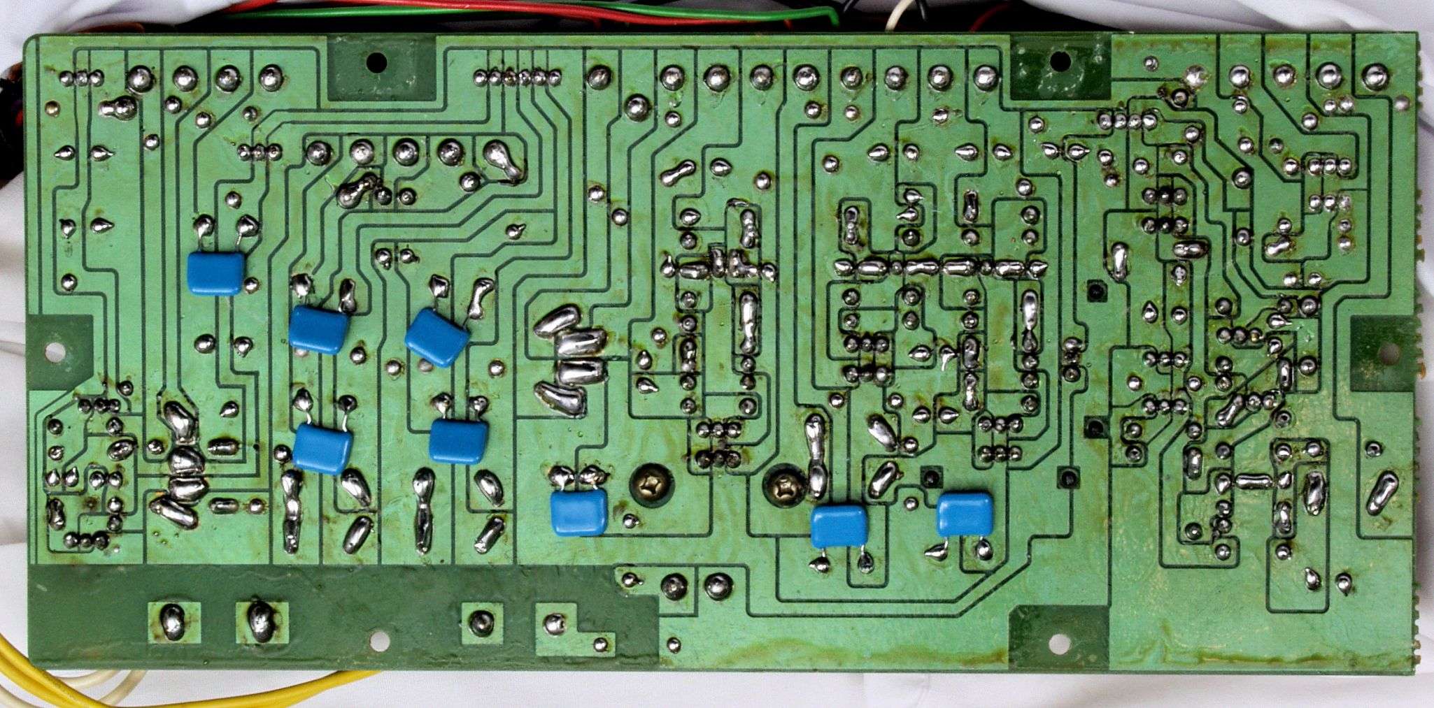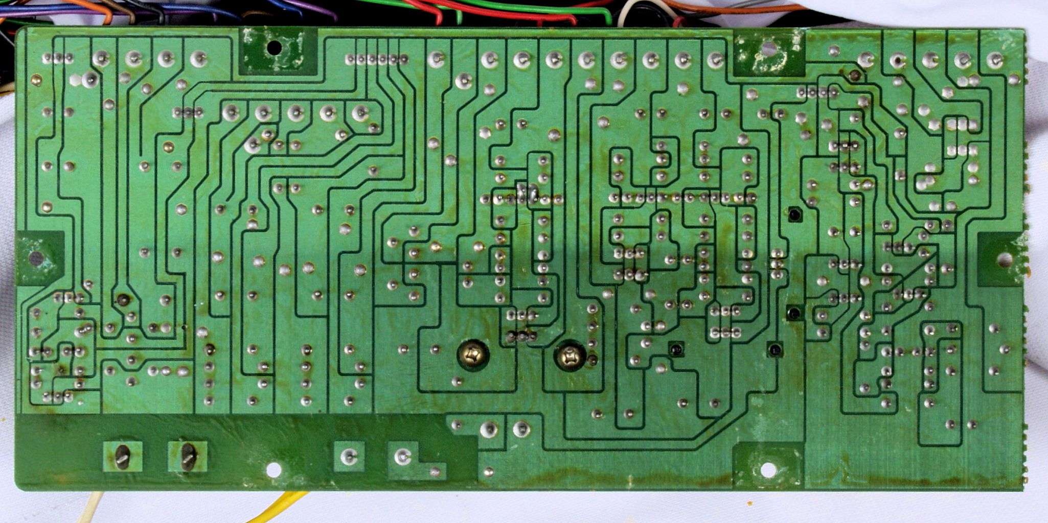 | C64. 修理(半田補正)後 コントロール基板裏 手直しで取り付けられたコンデンサー・抵抗、出来るだけ表へ移動する | ||||||||||||||||||||||||||||||||||||||||||||||||||
