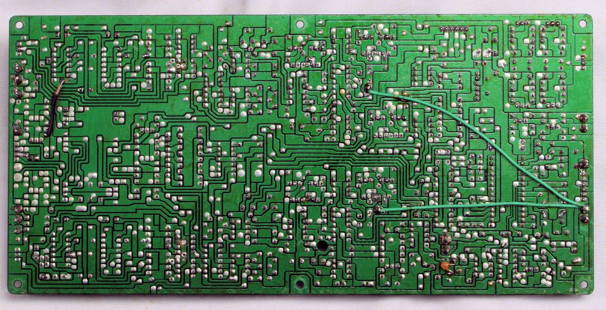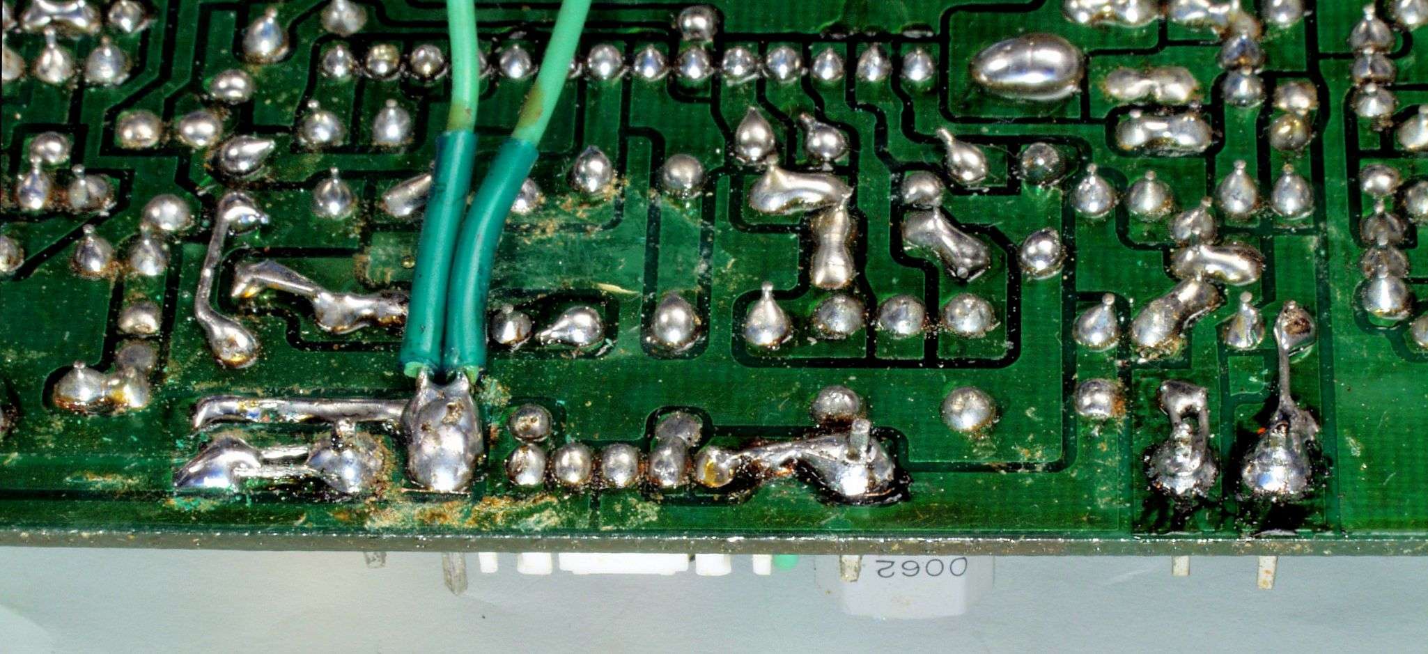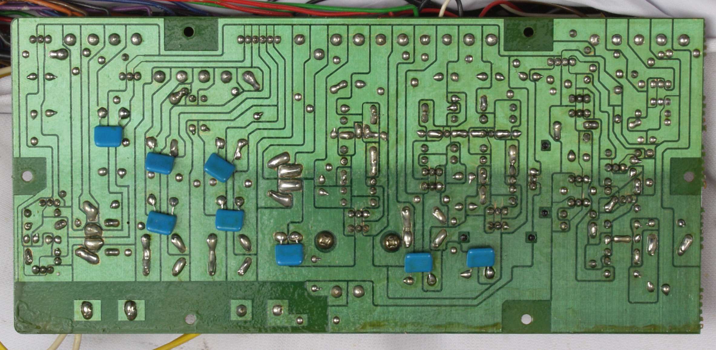 | C64. 修理(半田補正)後 コントロール基板裏 手直しで取り付けられたコンデンサー・抵抗、出来るだけ表へ移動する | ||||||||||||||||||||||||||||||||||||||||||||||||||