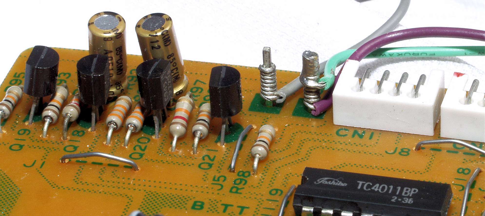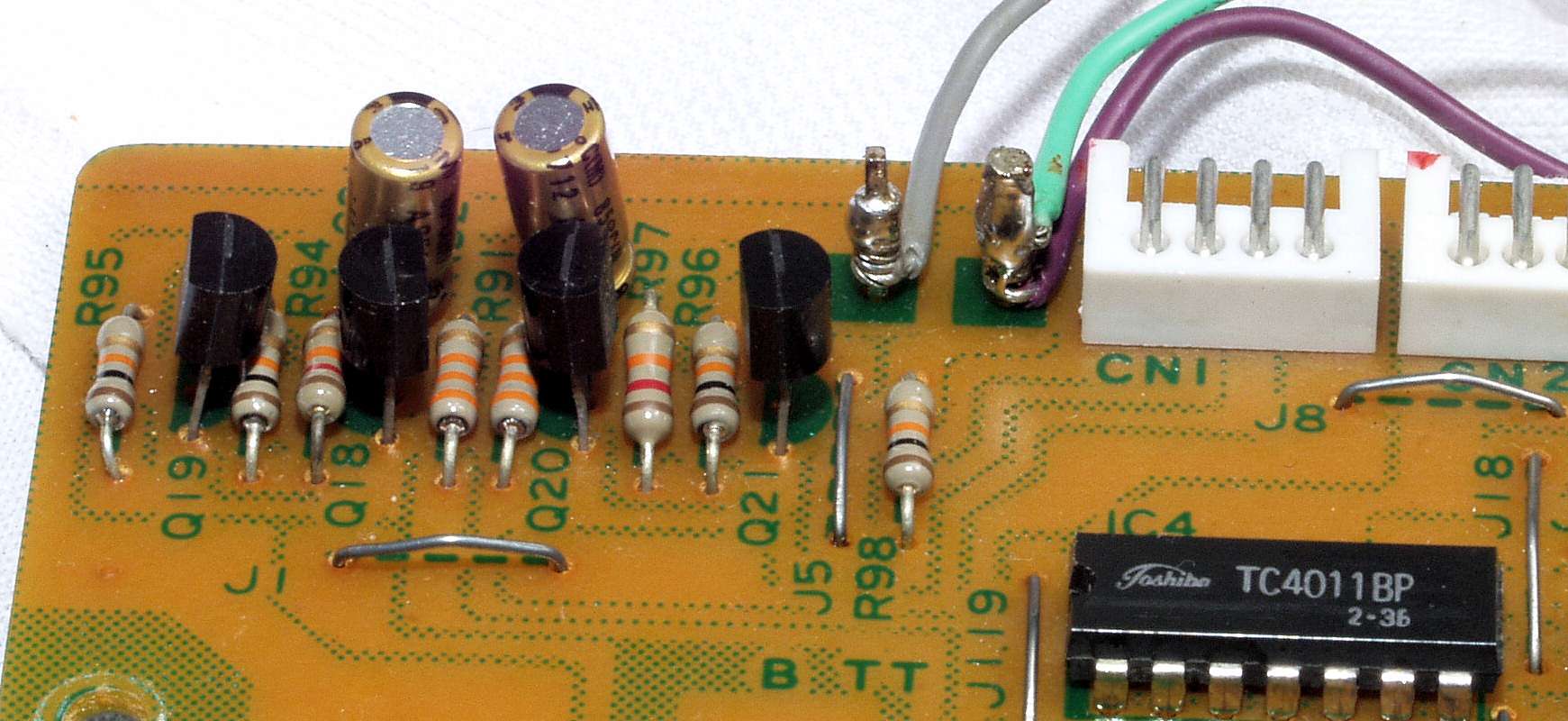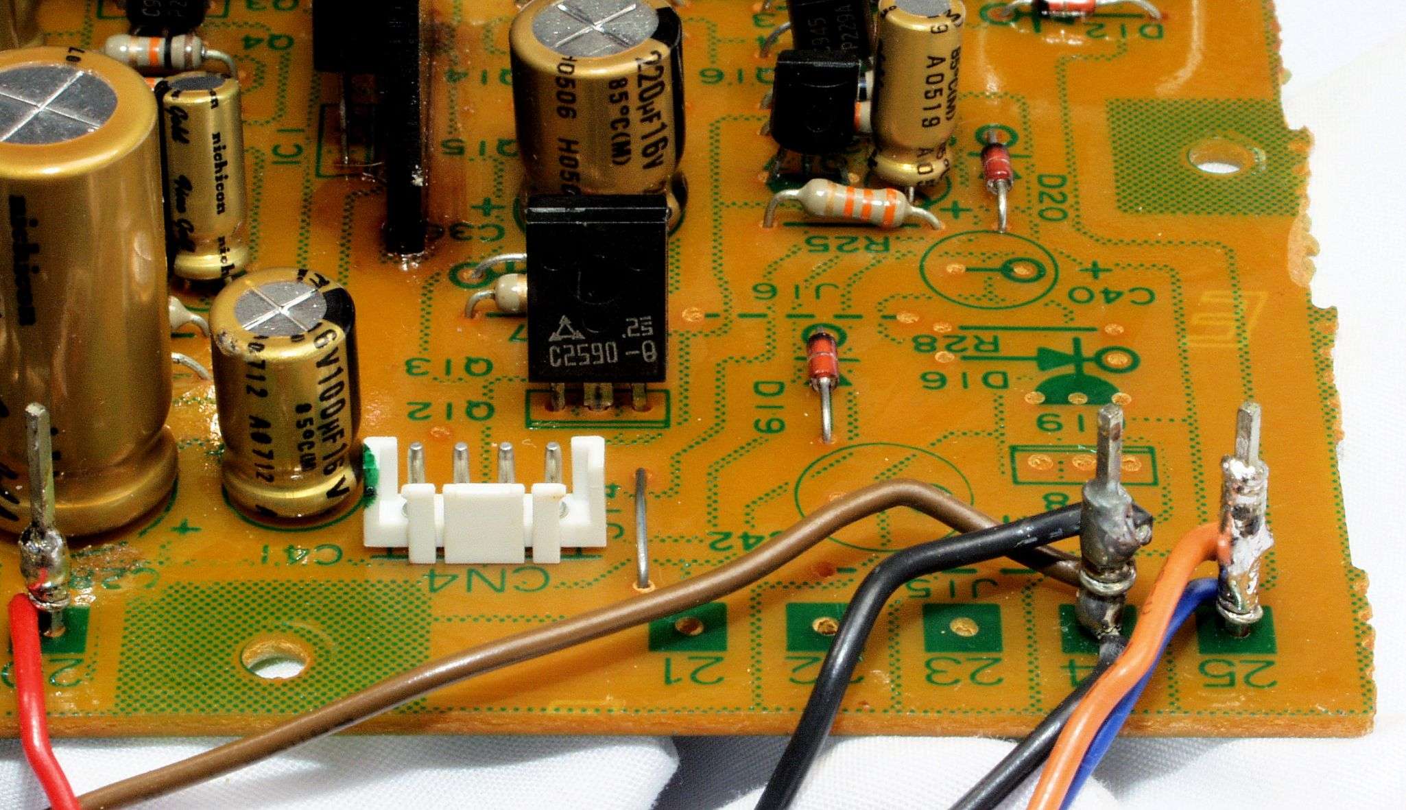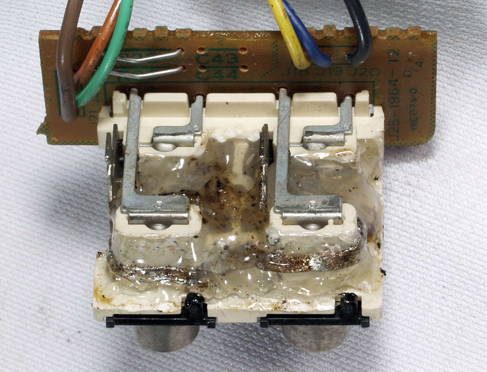 | CF1. 修理前 出力RCA端子基板裏 | ||||||||||||||||||||||||||||||||||||||||||||||||||