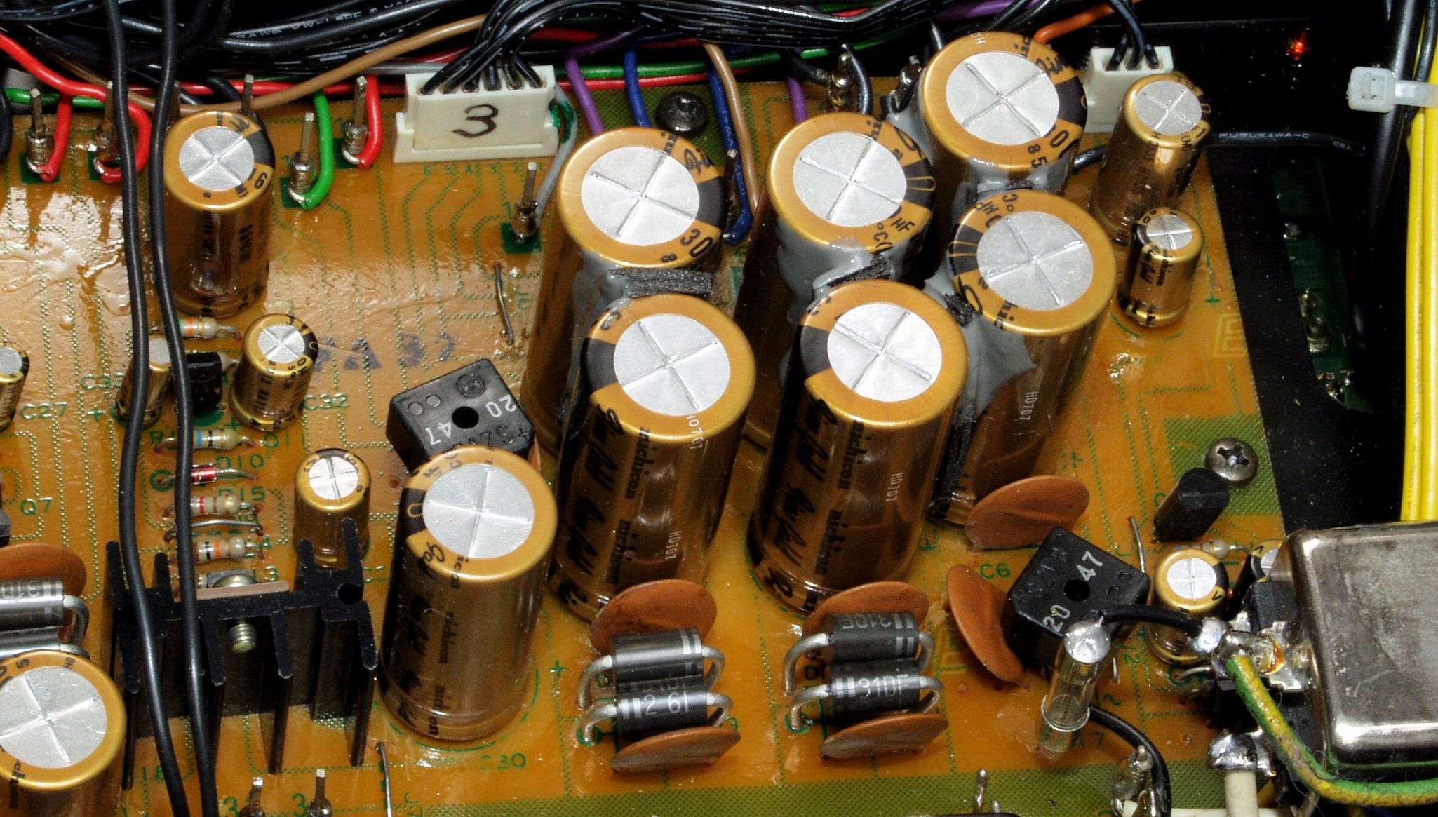 | C113. 修理中 電源基板、電解コンデンサーを固定した接着材、トルエンを使用したのでしょう、金属を腐食します。 | ||||||||||||||||||||||||||||||||||||||||||||||||||