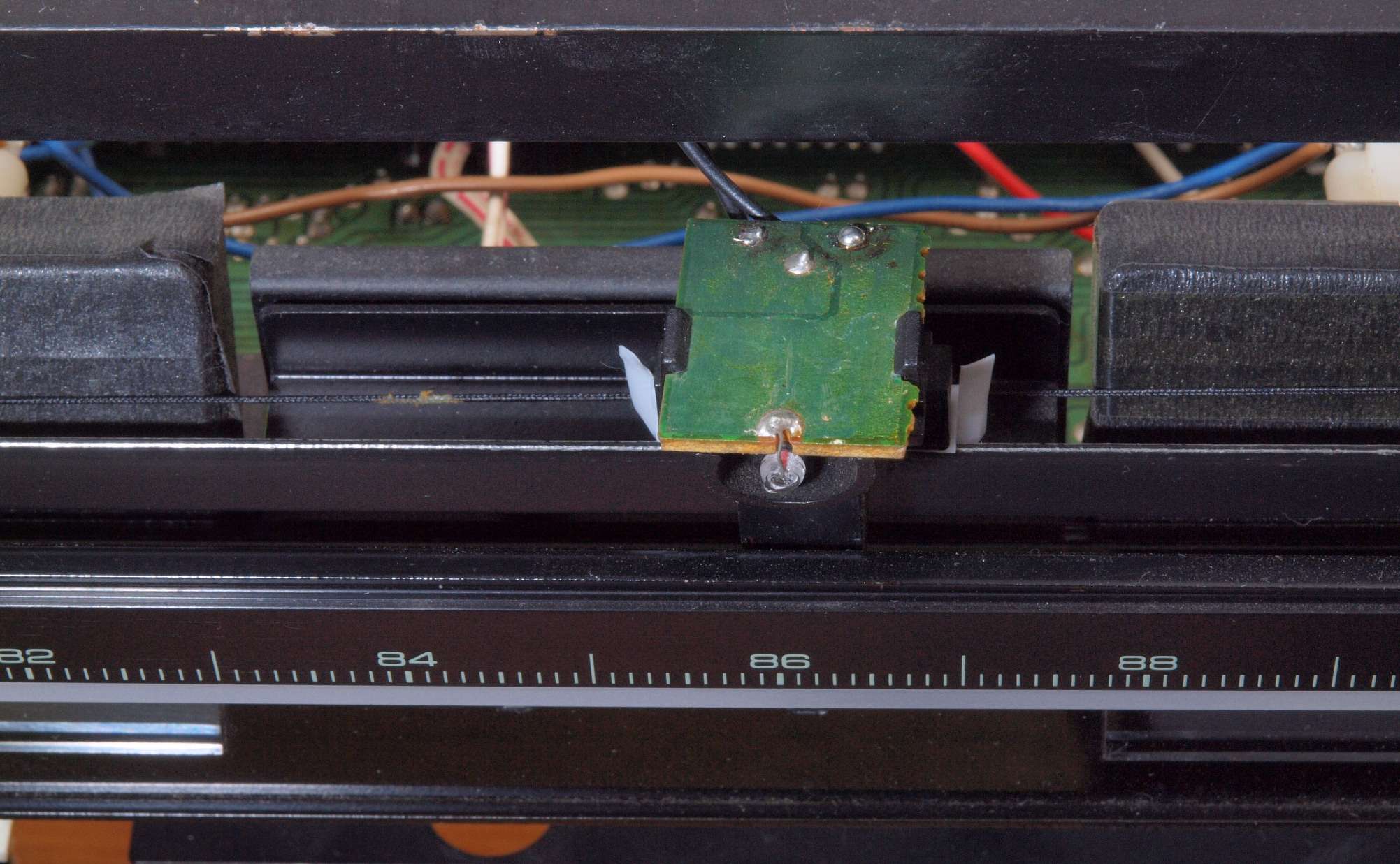 | A16. 点検中 上ケース・シールド・前パネルを取り、上から見る、バリコンの軸(プーリ)が曲がっている! |