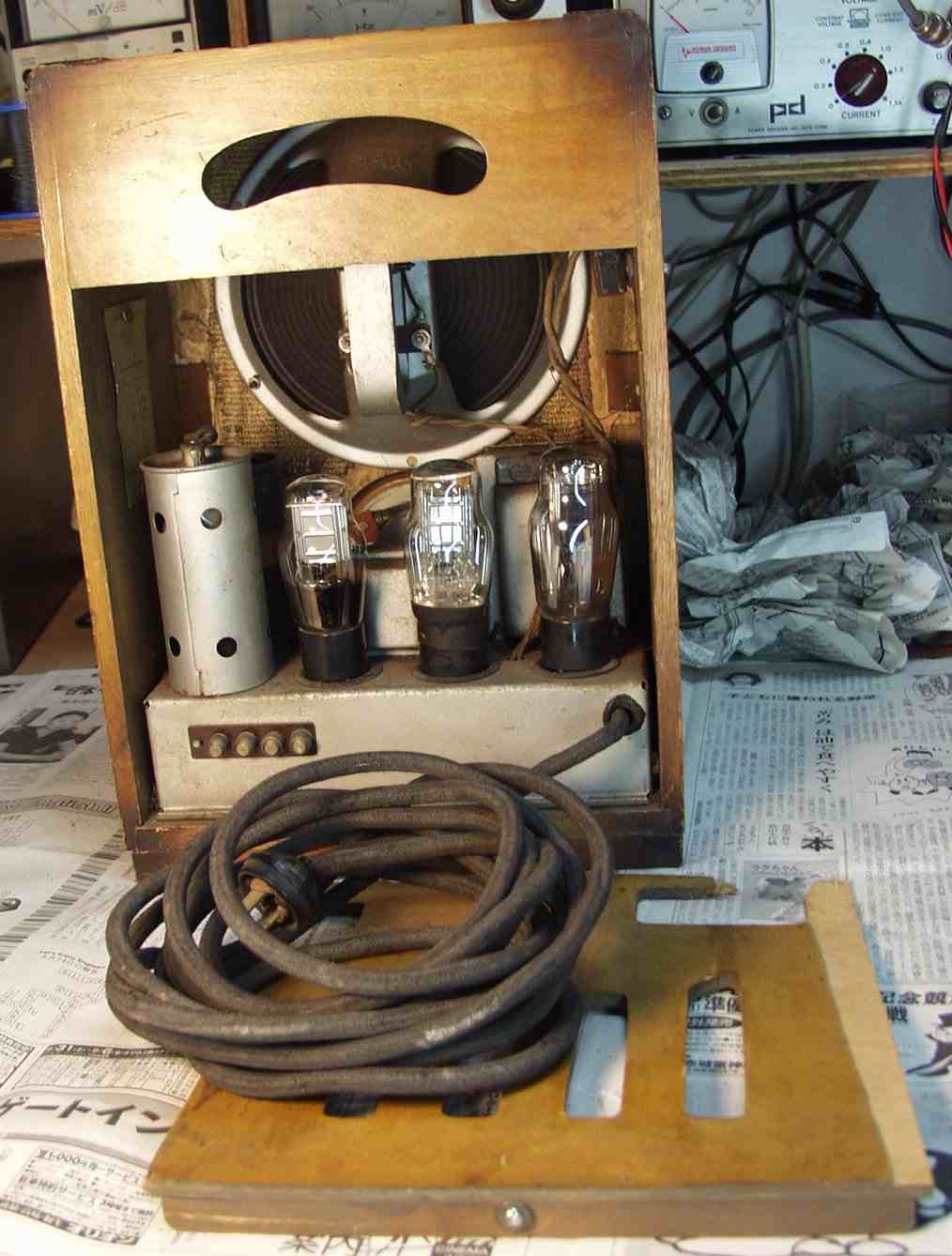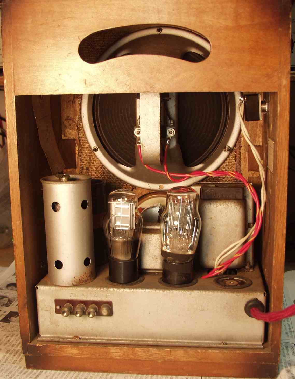 真空管の構成 27A−26B−26B 12A 直熱菅なので、大容量コンデンサ−使用でも、ハムは残ります