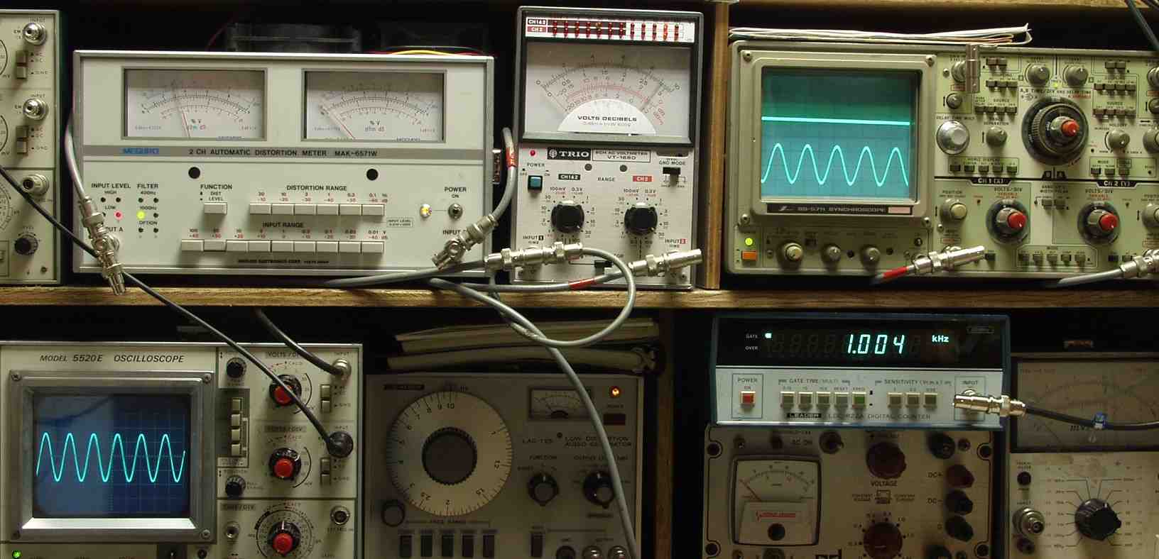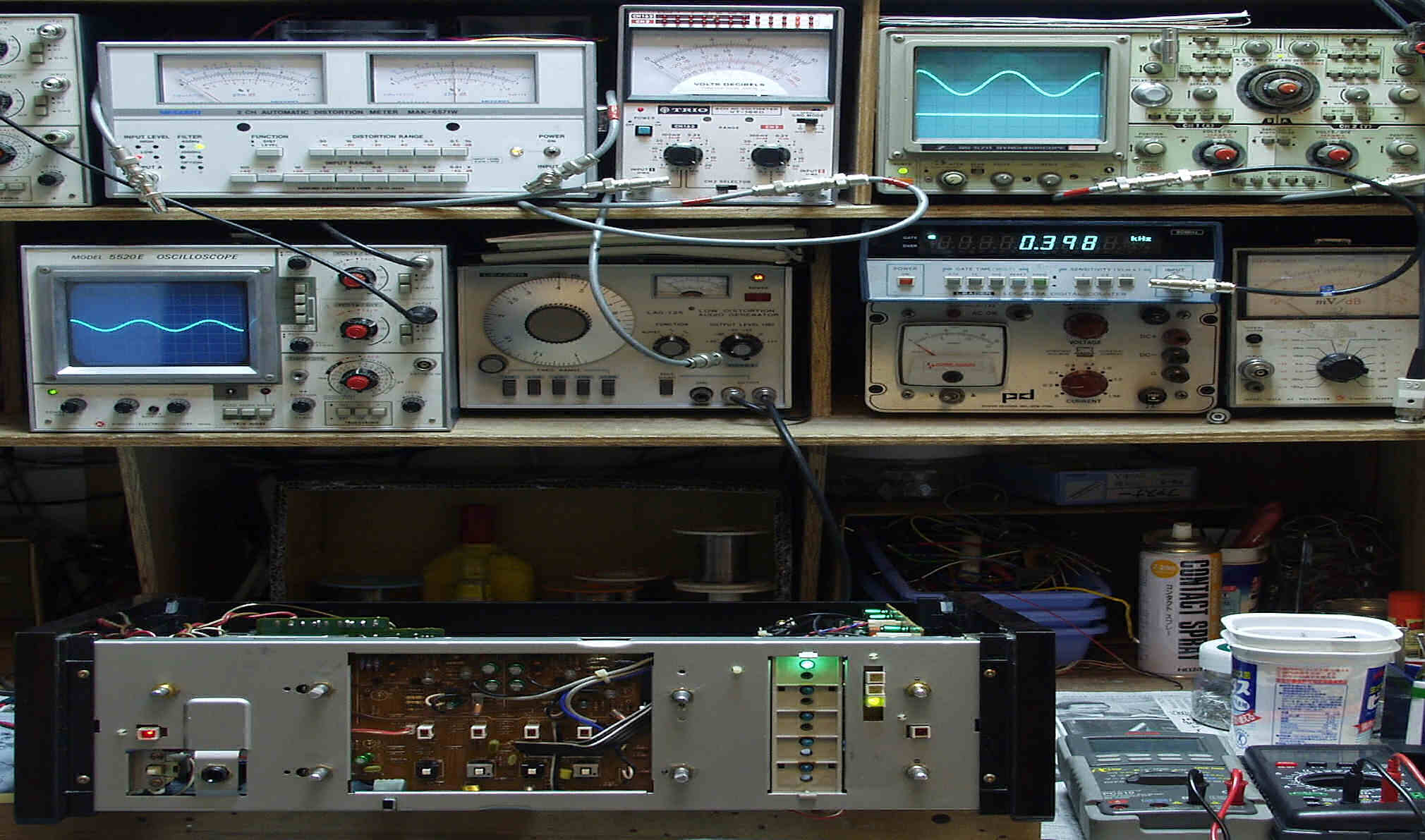 | E−4D. L側SP出力=28V=98W 歪み率0.06% at=400HZ AUX端子入力 |