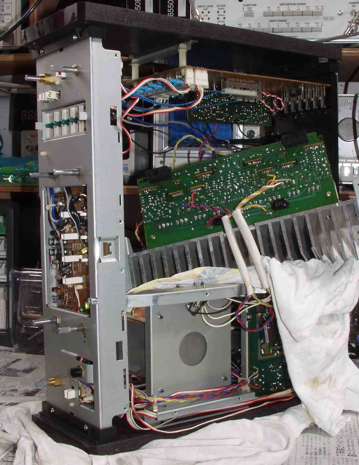| E−2D. L側SP出力=28V=98W 歪み率0.03% at=400HZ AUX端子入力 |